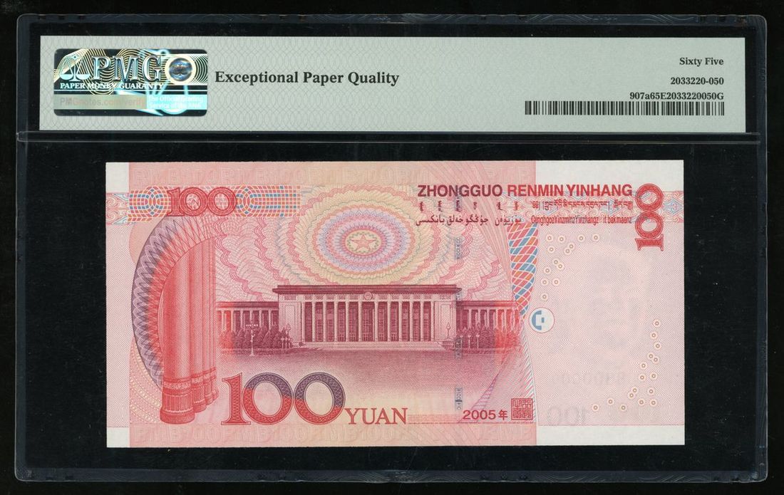 2005 年中國人民銀行第五版人民幣壹佰圓,趣味號 TX68 800000,PMG 65EPQ
