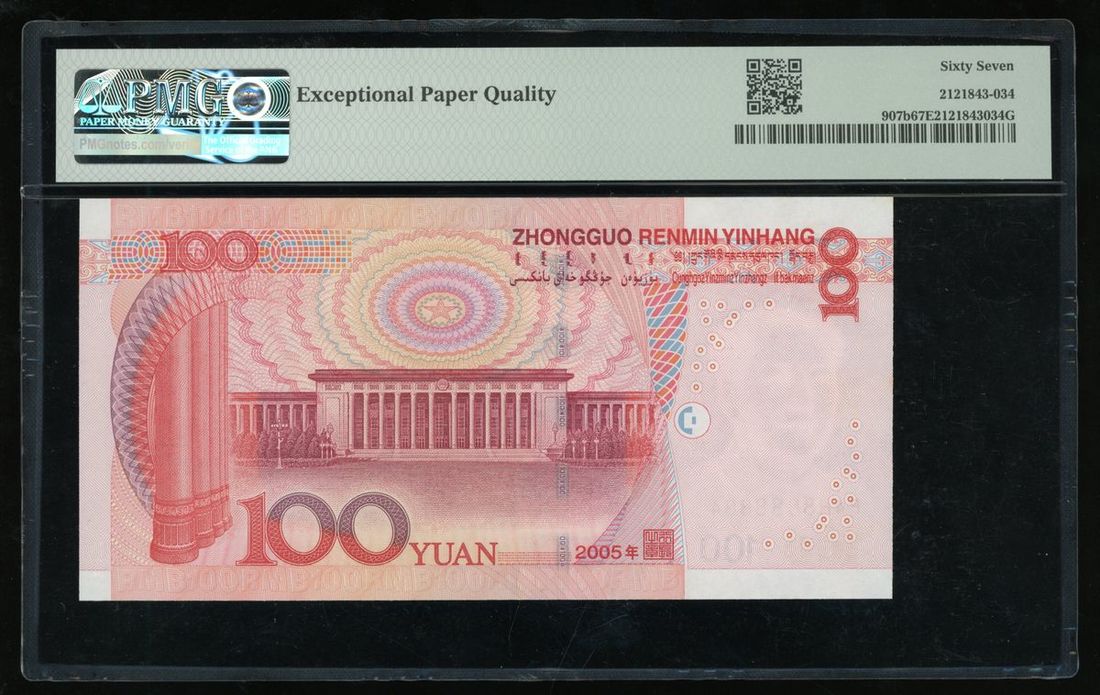 People's Bank of China, 5th series renminbi, 100 yuan, 2005, super radar serial number P4H8 888884, (Pick 907b), PMG 67EPQ Superb Gem Uncirculated