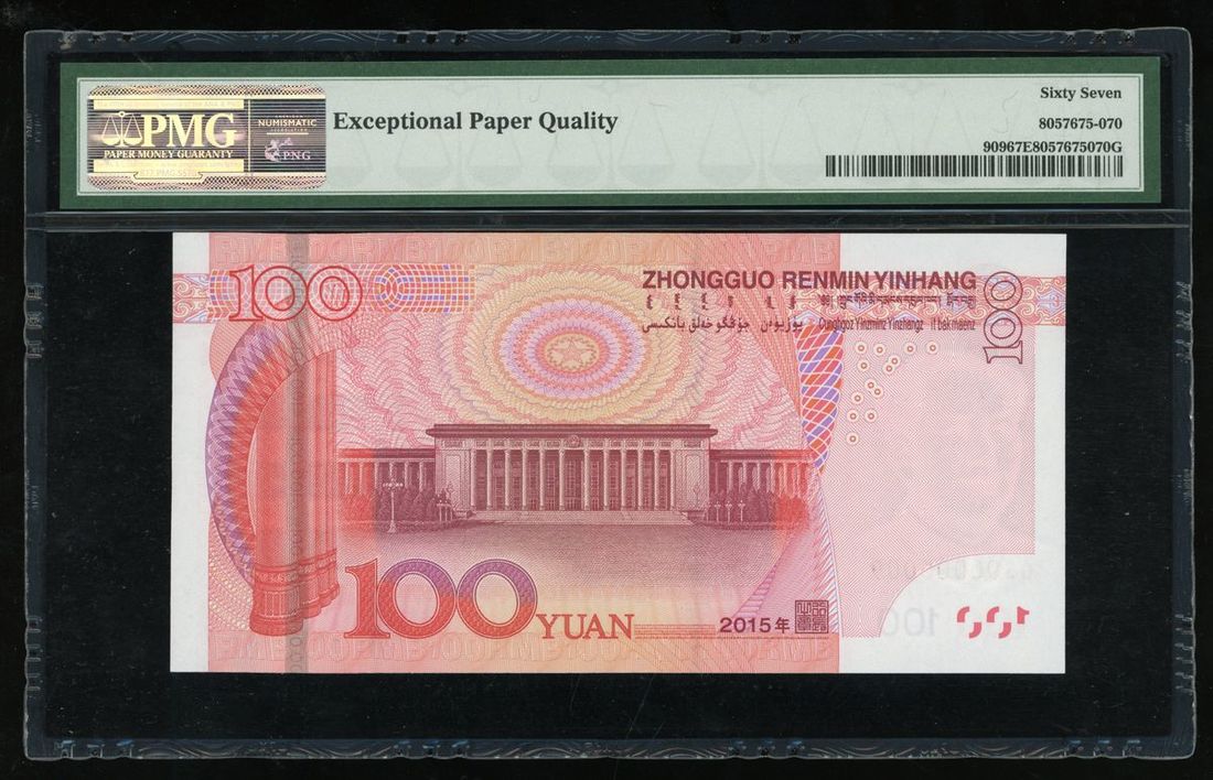 People's Bank of China, 5th series renminbi, 100 yuan, 2015, low serial number QS00000009, (Pick 909), PMG 67EPQ.
