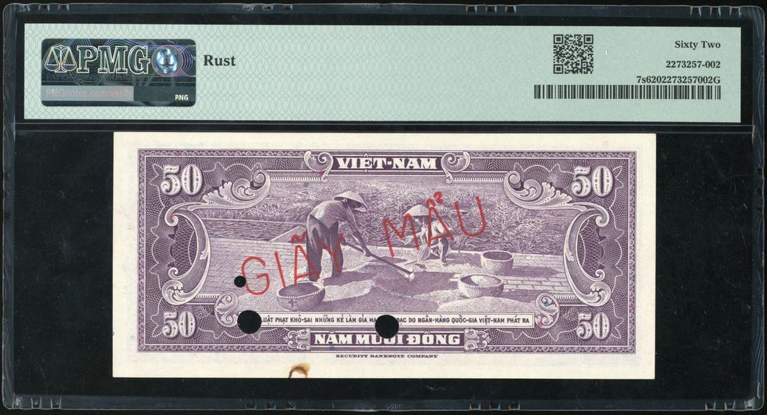 1956年越南50盾樣票, 編號 1-A 000000, PMG 62
