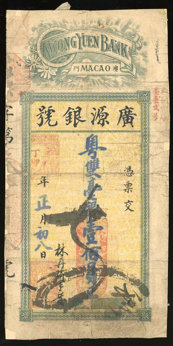 Kwong Yuen Bank, Private Issue, Macao, a pair of $50 and $100, Year Jiazi and Year Dingmao, (Pick unlisted), about very fine (2).