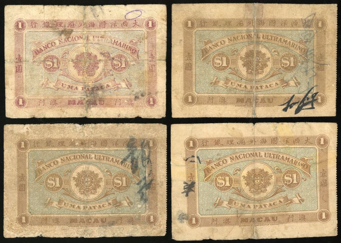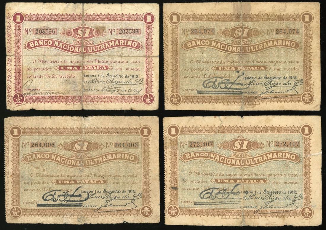 Banco Nacional Ultramarino, Macau, a group of 4x CONTEMPORARY FORGERY 1 pataca, 1912, serial numbers 203596, 272407, 264006 and 264074,