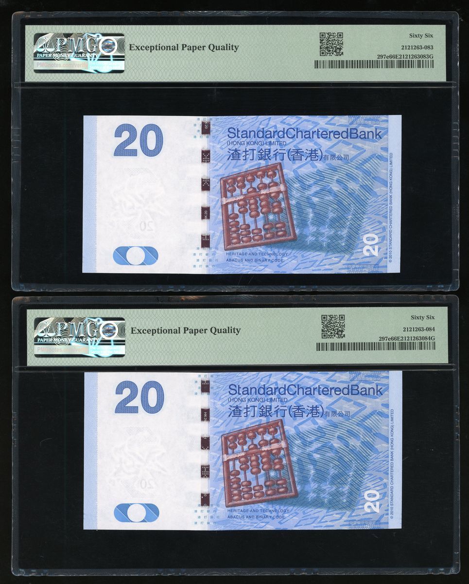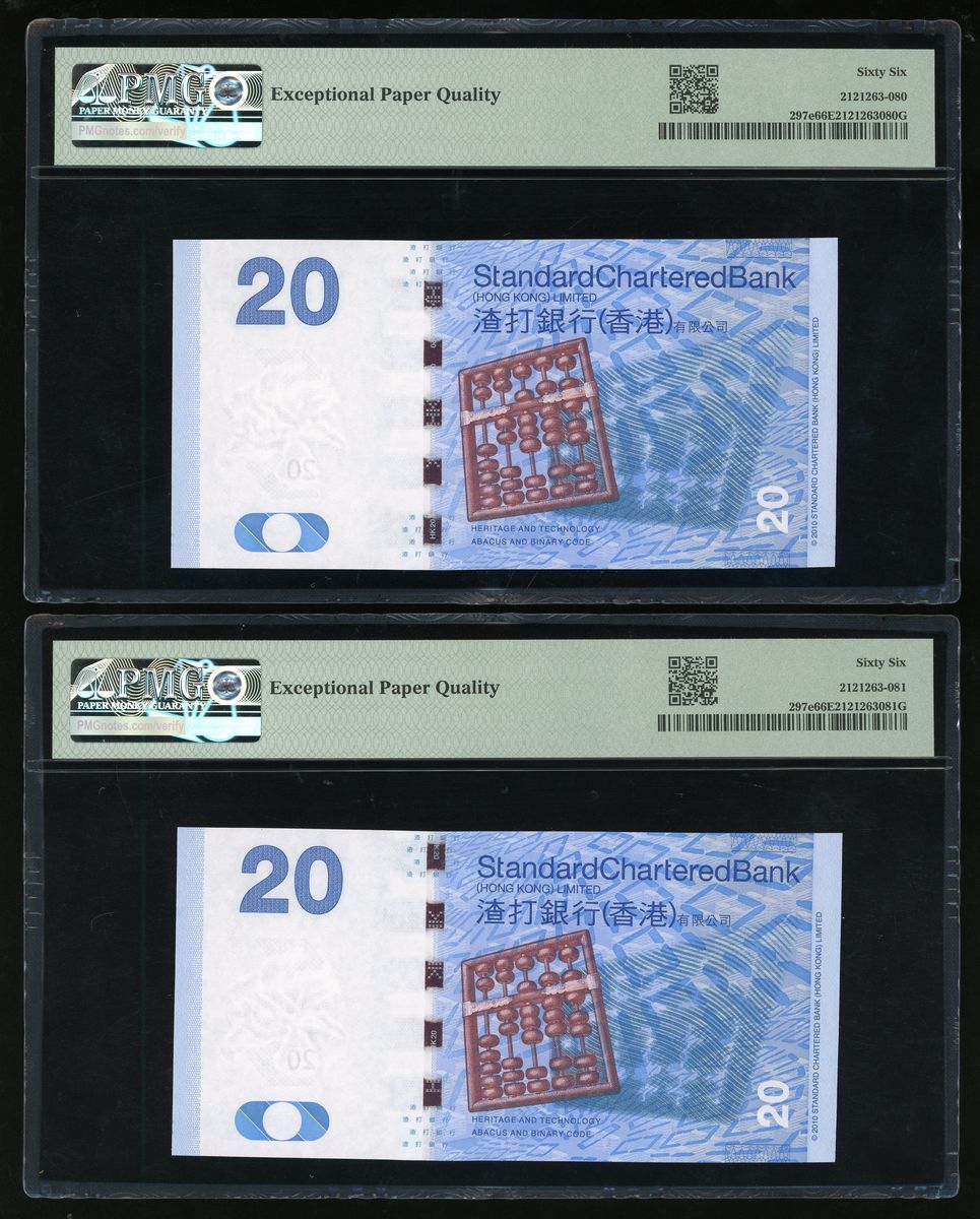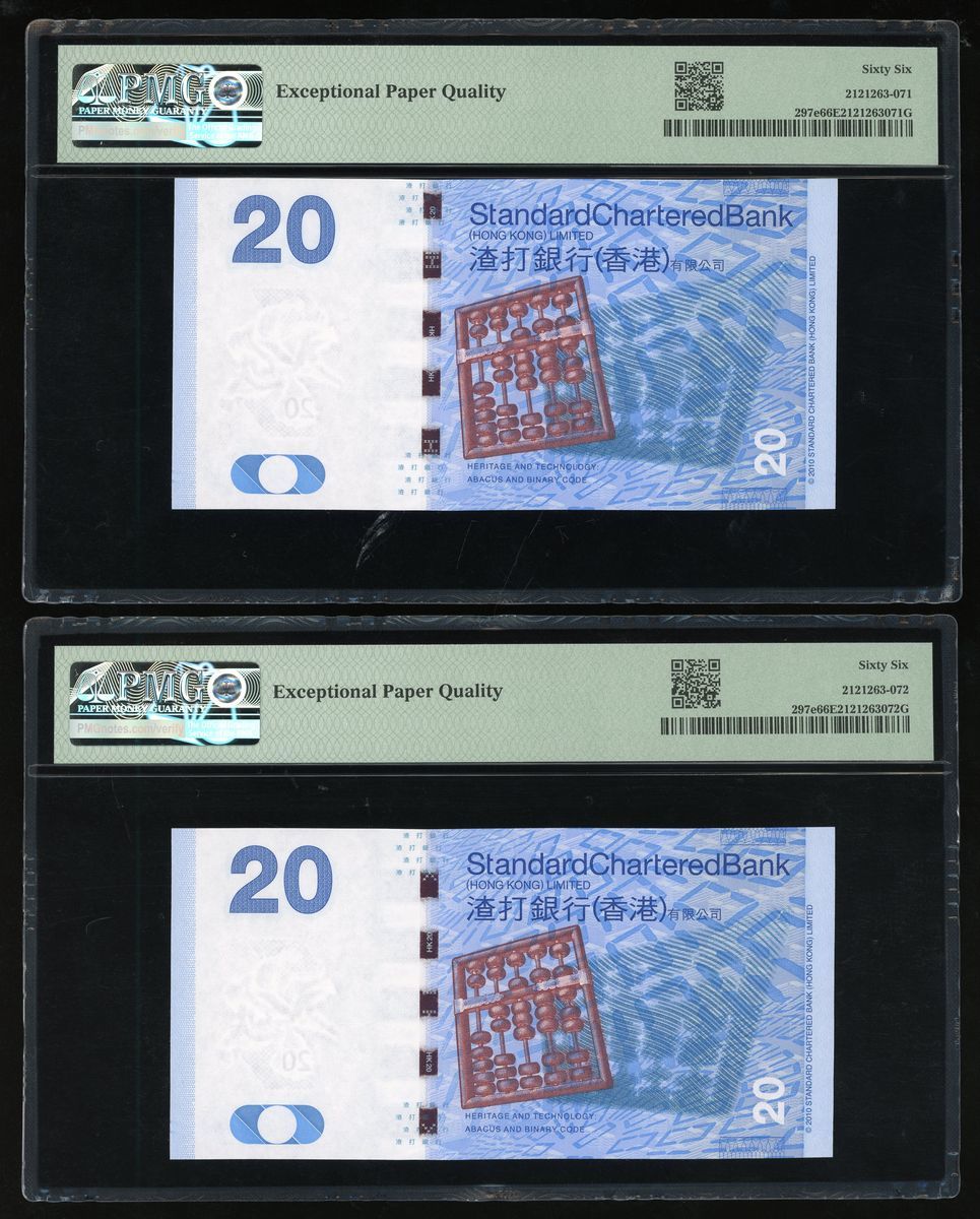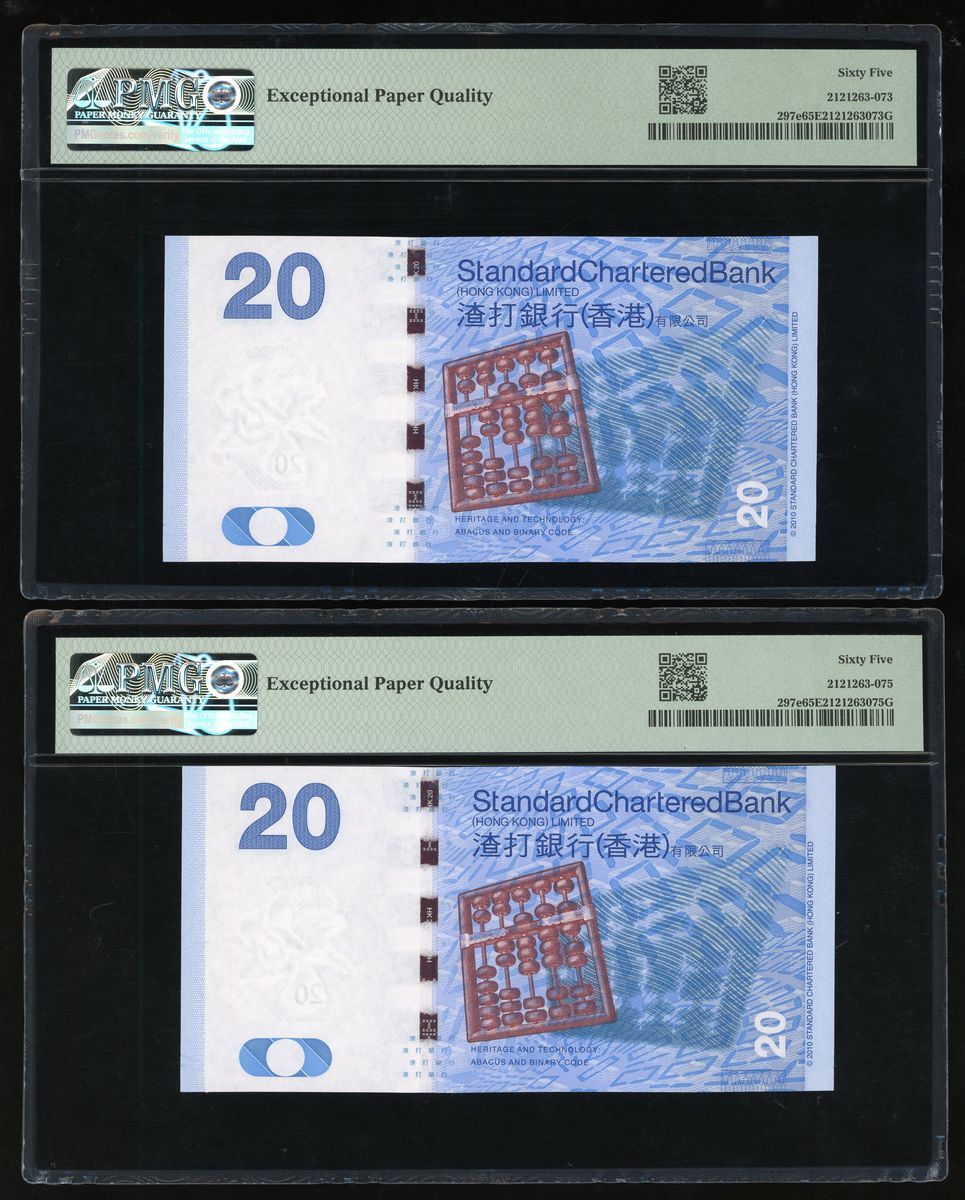 Standard Chartered Bank, Hong Kong, a group of near fancy serial number $20, 2016, serial number, GQ333331, GQ333332, GQ333334, GQ333335, GQ333336, GQ333337, GQ333338, GQ333339, GW333330, GW333331, GW333332, GW333334, GW333337, GW333338, GW333339,