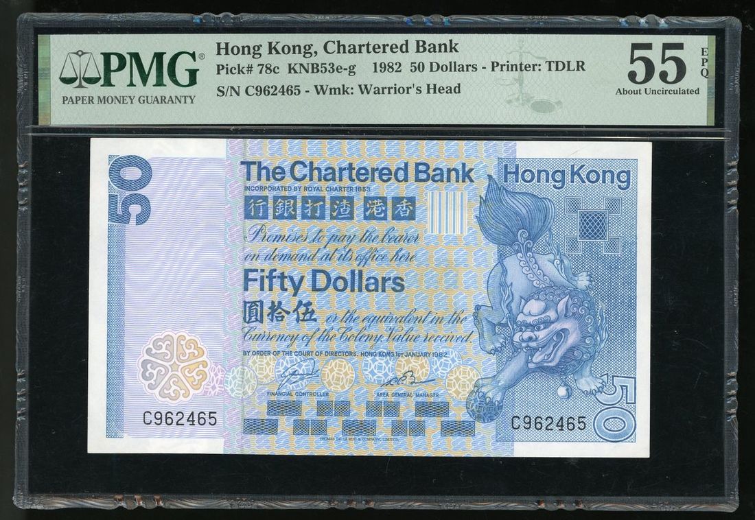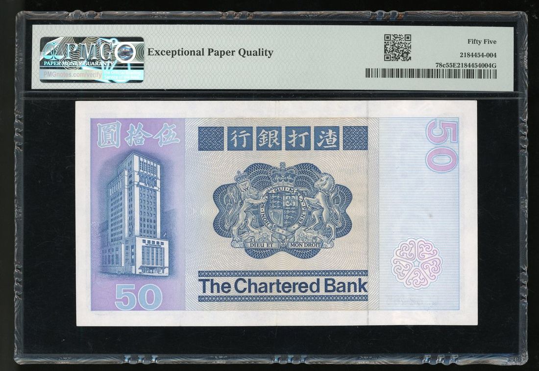 The Chartered Bank, $50, 1.1.1982, serial number C 962465, (Pick 78c), PMG 55EPQ About Uncirculated