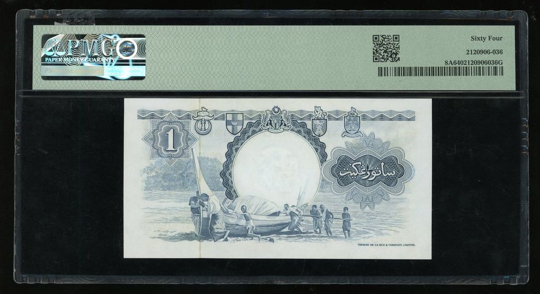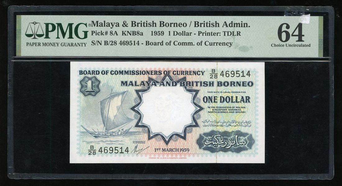 Malaya & British Borneo, $1, 1959, serial number B/28 4469514, (Pick 8A), PMG 64