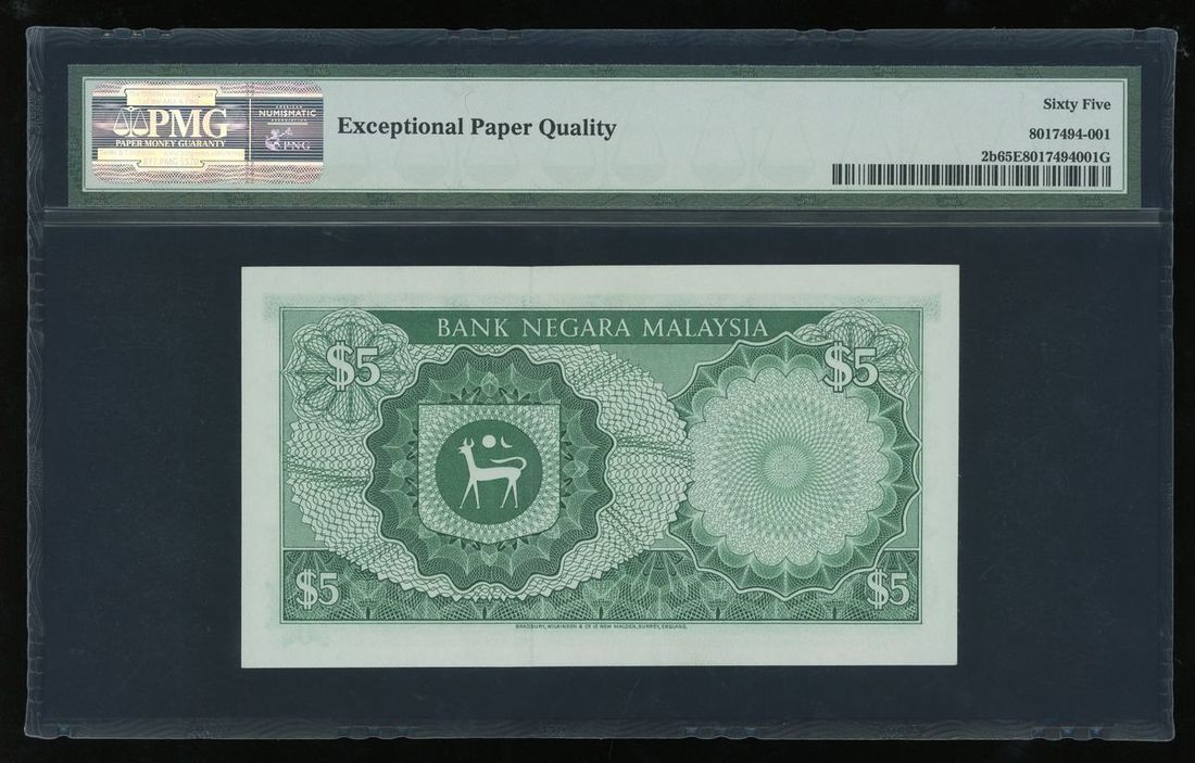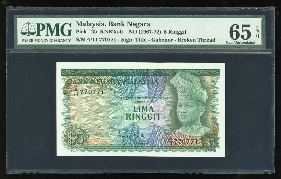 Bank Negara Malaysia, 5 ringgit, ND (1967-72), serial number A/11 770771, (Pick 2b), PMG 65EPQ