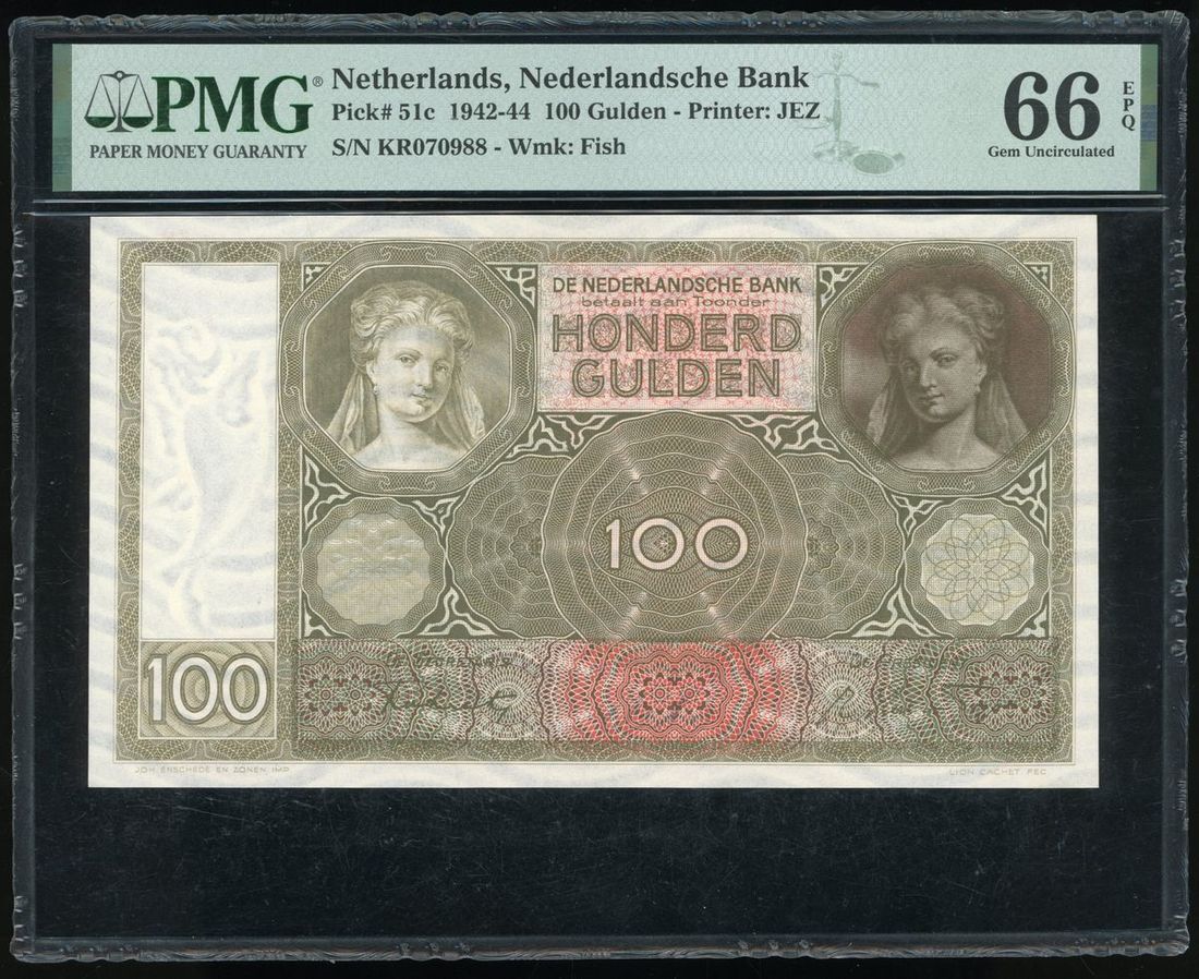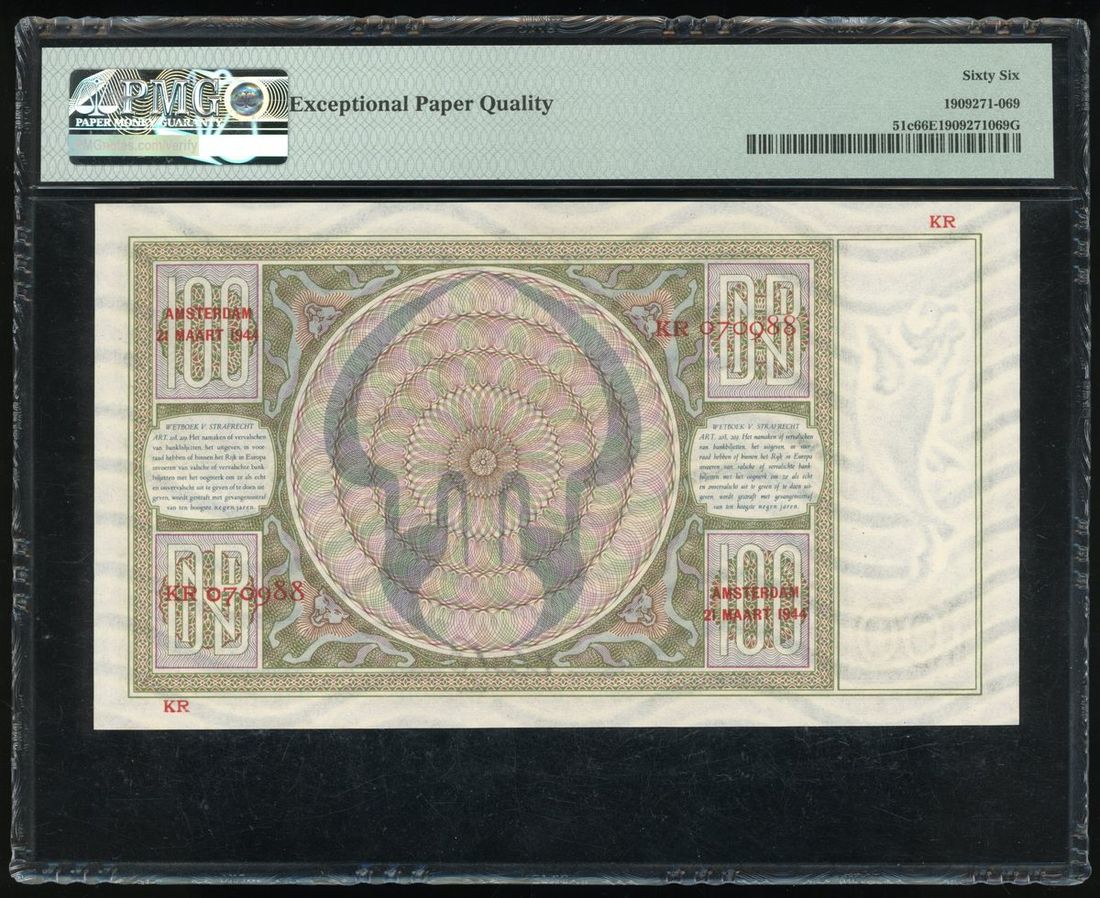 Nederlandsche Bank, The Netherlands, 100 gulden, 1944, serial number KR070988, (Pick 51c), PMG 66EPQ