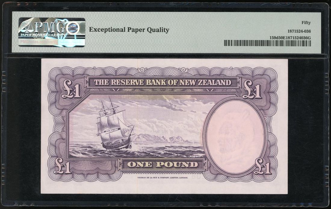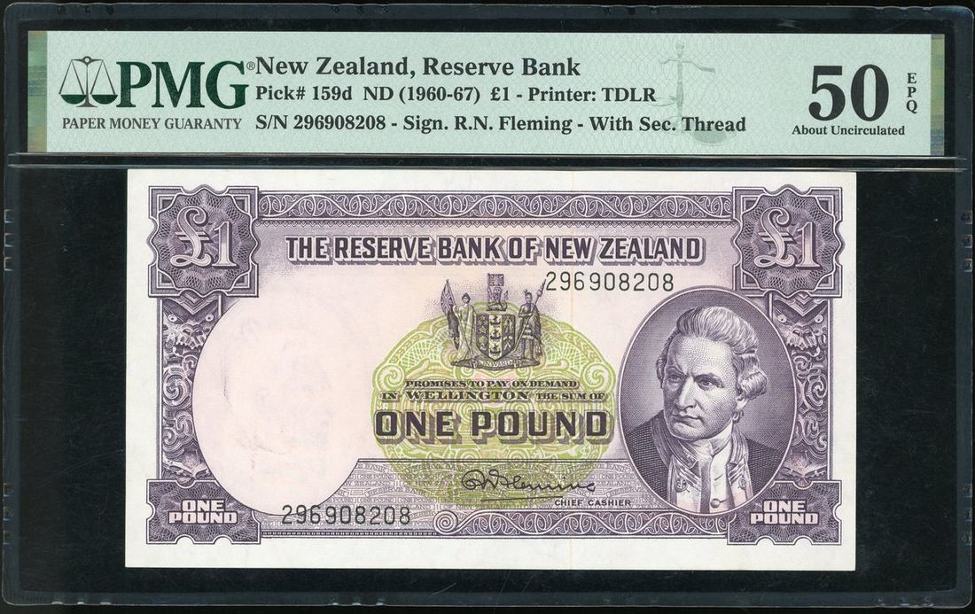 The Reserve Bank of New Zealand, 1 pound, ND (1960-1967), serial number 296908208, (Pick 159d), PMG 50EPQ About Uncirculated
