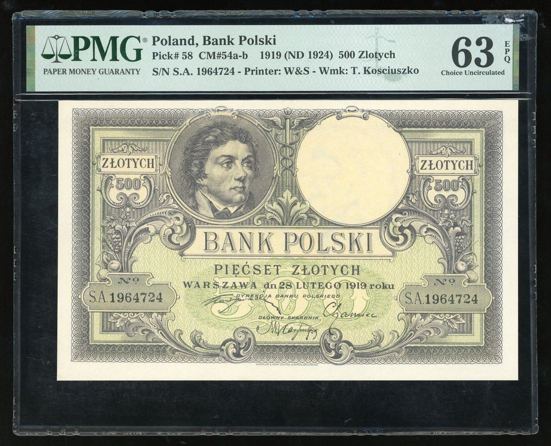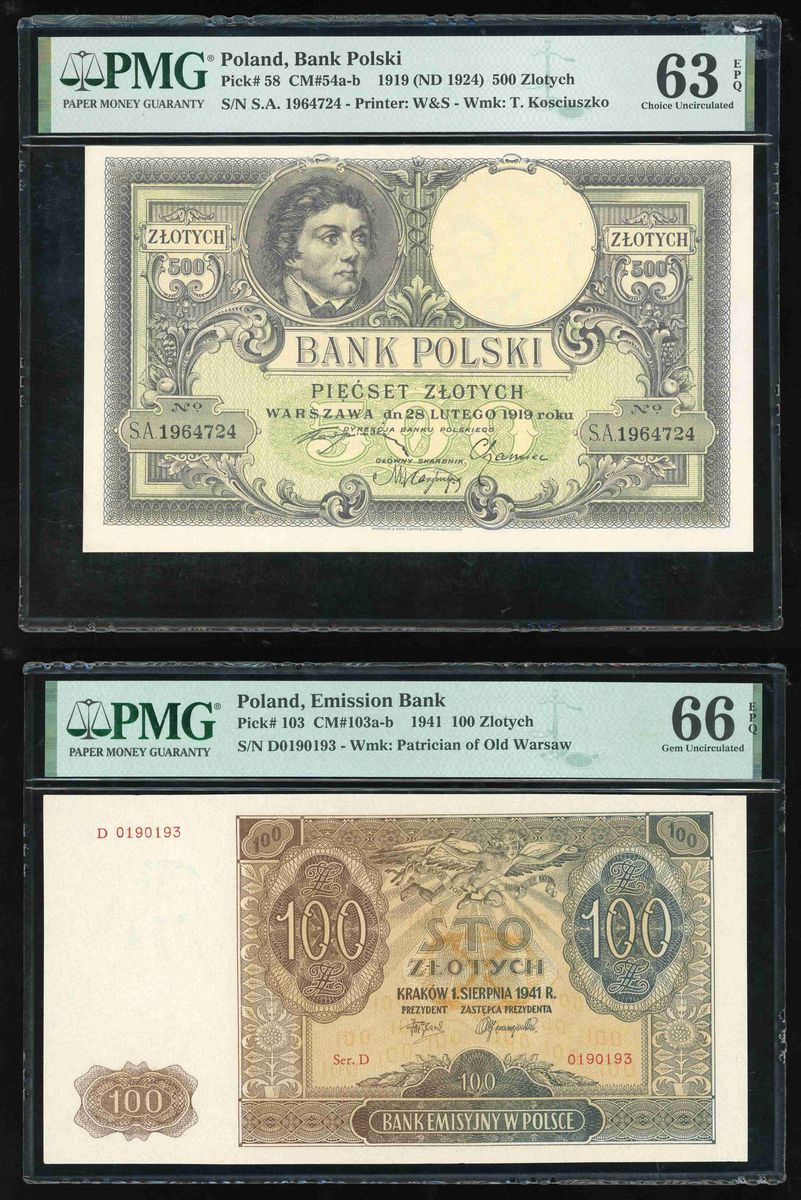 Poland, a pair, including 500 zlotych 1919 and 100 zlotych 1941, (Pick 58, 103), PMG 63EPQ and 66EPQ respectively (2)