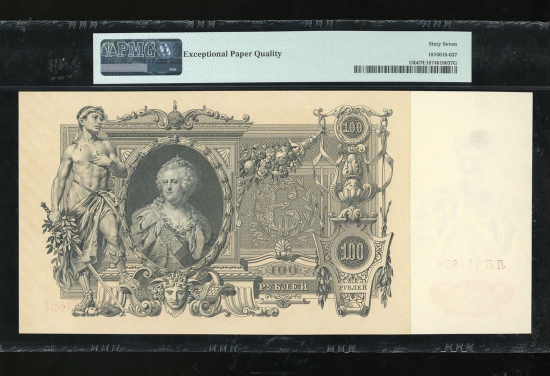 Russia State Credit Note, 100 rubles, ND (1912-17), serial number LL111827, (Pick 13b), PMG 67EPQ. PMG Census TOP POP, one of only seven! Though a common type but extremely diffult to find a large size note from over 100 years ago in such high grade