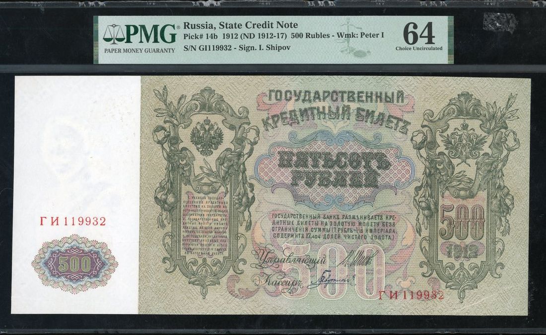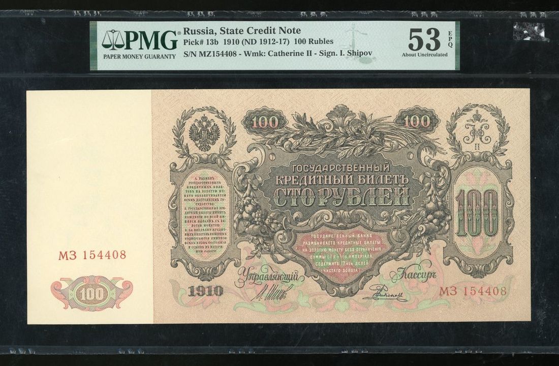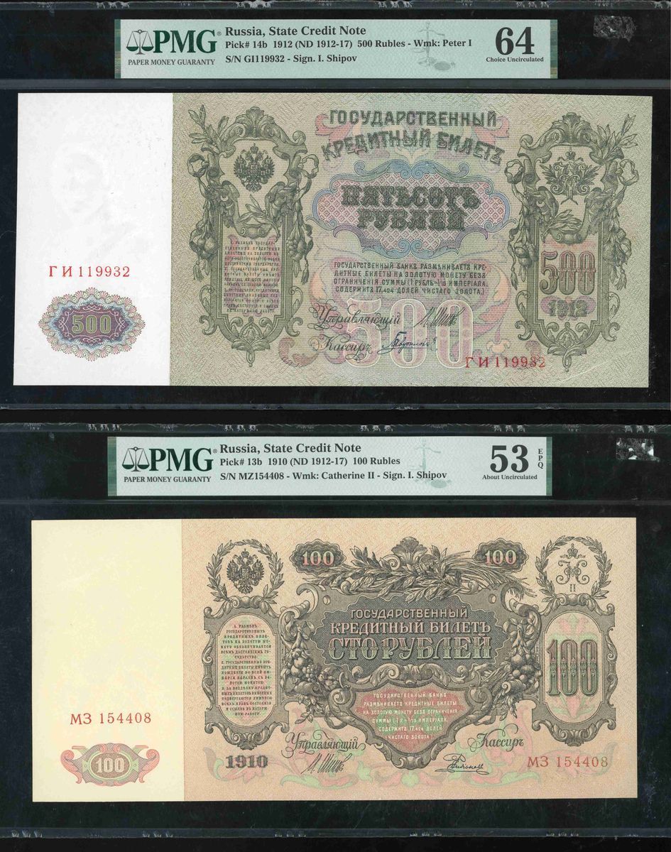 Russia State Credit Note, a pair, ND (1912-17), including 100 and 500 rubles, (Pick 13b, 14b), PMG 53EPQ and 64 respectively (2)