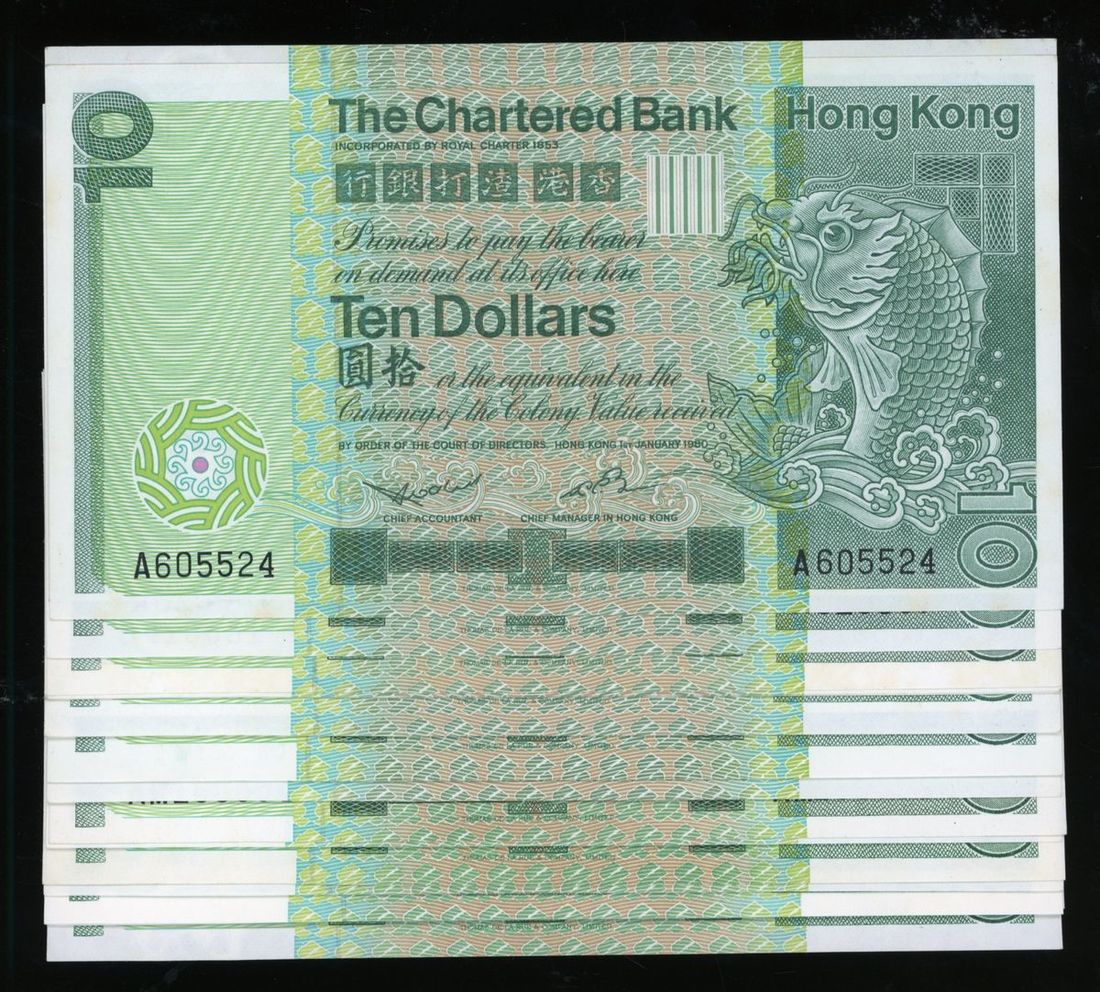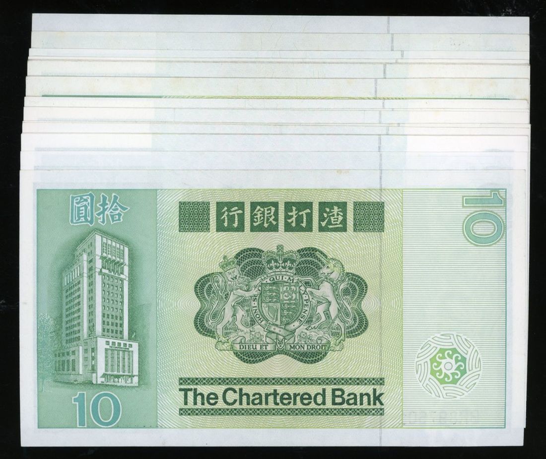 Chartered Bank, Hong Kong, $10 (23), 1980, 1981, (Pick 77a, b), about uncirculated or better (23)