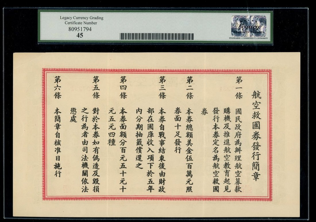 民國三十年航空救國券伍拾圓,編號007231,LCG 45