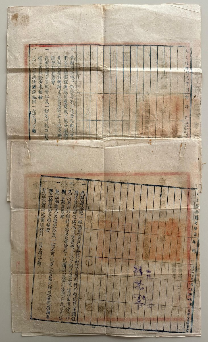 China, Zhejing Province, Hangzhou, Land Registration, Republic Era, a pair, certificate with land lot map, one with revenue stamp, with handling very fine (2)