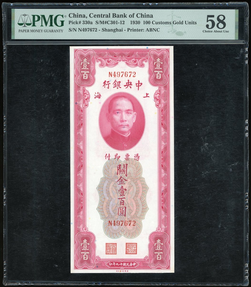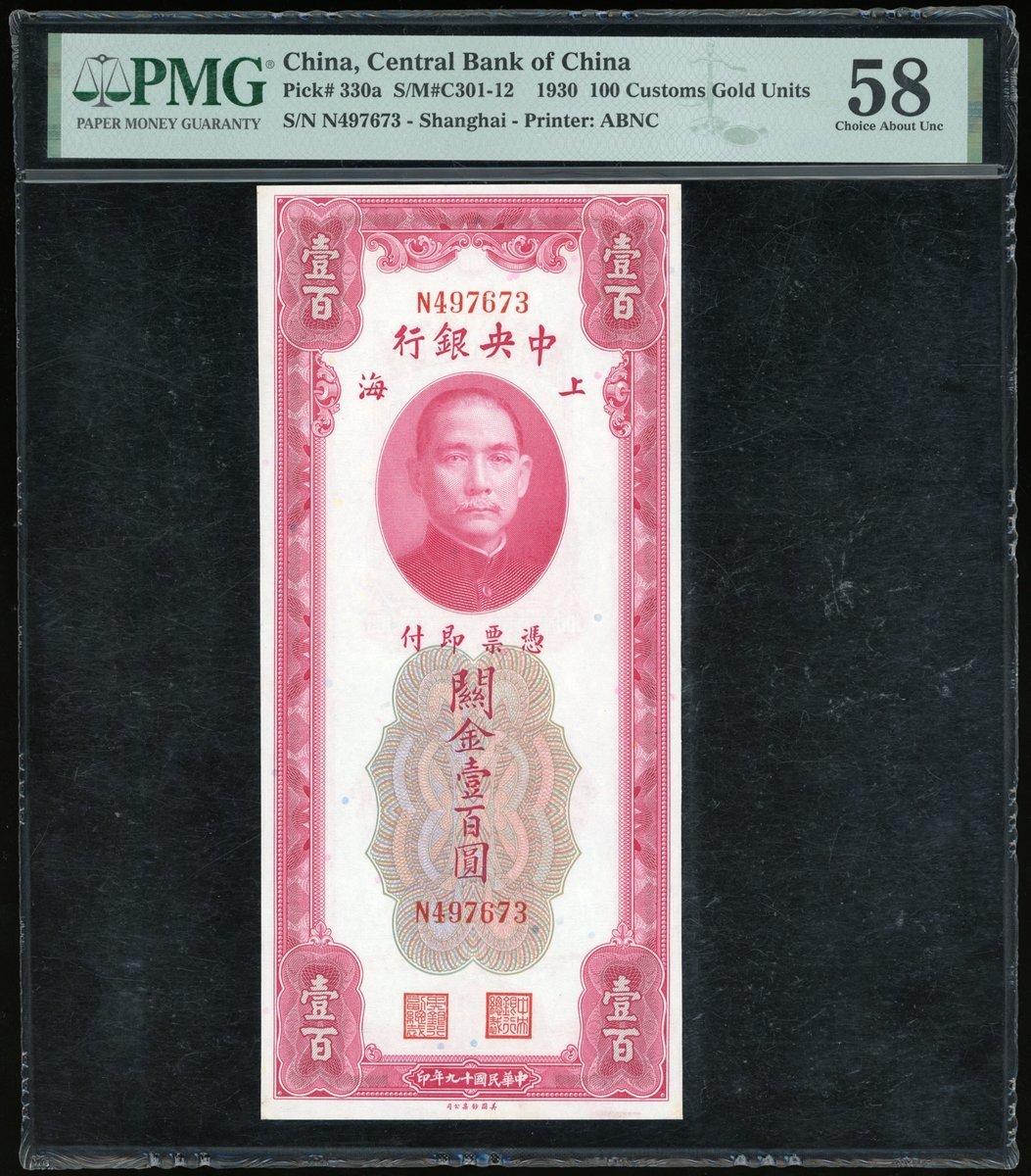 The Central Bank of China, a consecutive pair of 100 Custom Gold Units, 1930, serial numbers N 497672-73,