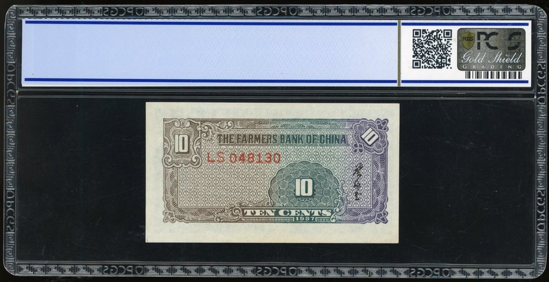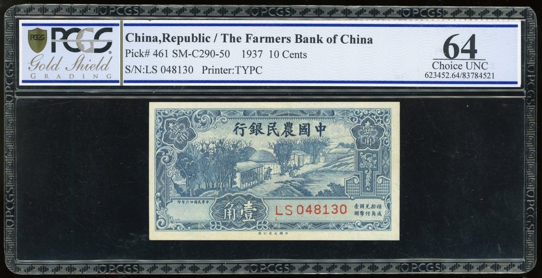 Farmers Bank of China, 10 cents, Year 26 (1937), serial number LS048130, (Pick 461), PCGS 64