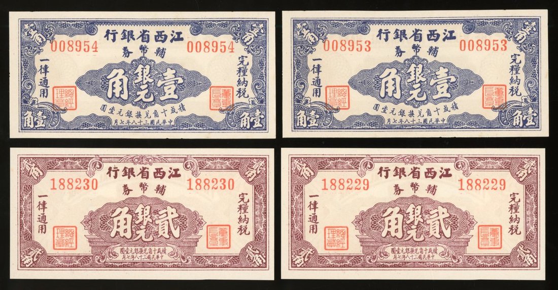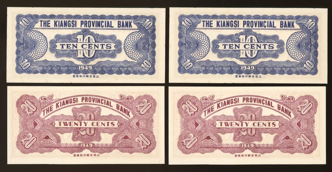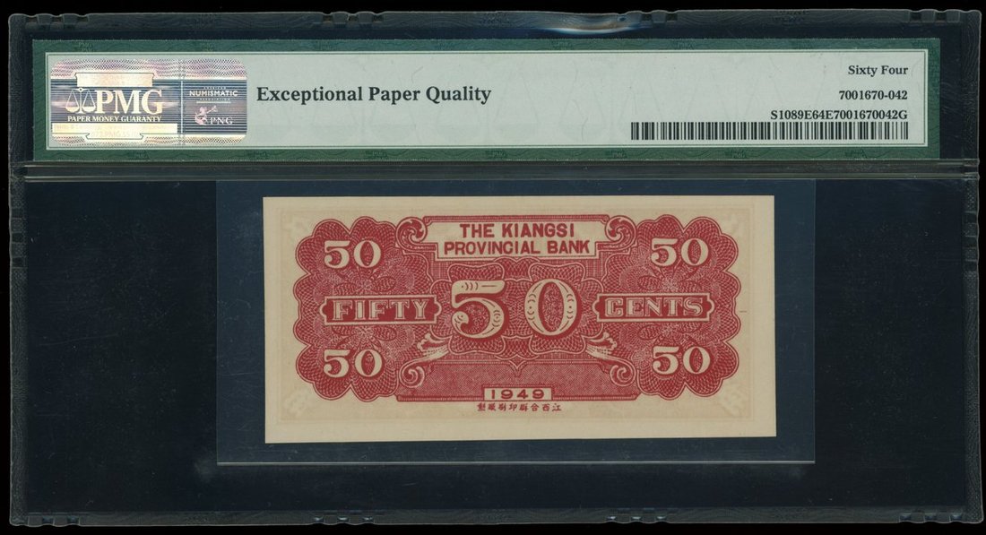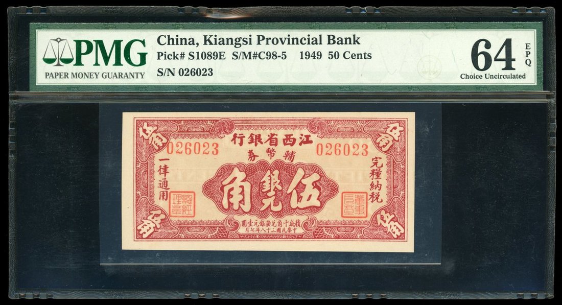 Kiangsi Provincial Bank, China, a group of 5x, 1949, including, 10 cents (2), 20 cents (2) and 50 cents, (Pick S1089C, S1089D, S1089E), 50 cents PMG 64EPQ, others uncirculated (5)