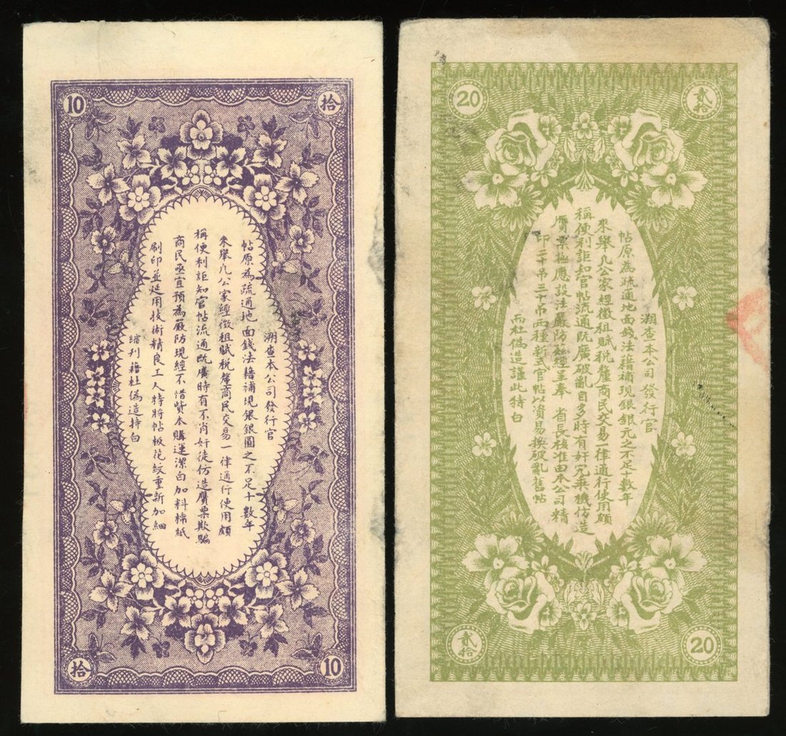 Kwang Sing Company, Heilungkiang, China, a pair, 10 tiao Year 8, 20 tiao Year 14, (Pick S1563, S1610), both with repaired split and margin, pressed very fine (2)