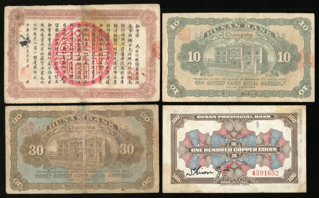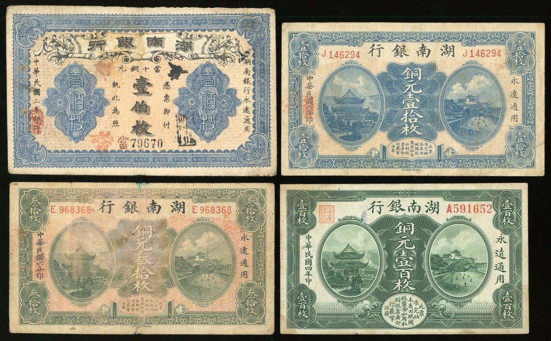 湖南紙鈔一組4枚早期版别,請參考圖片及英文
