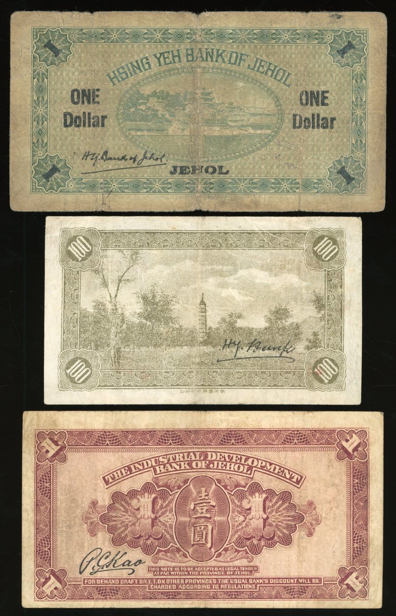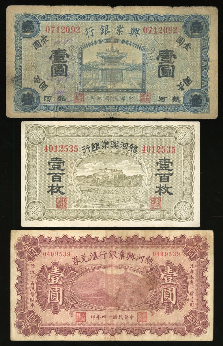 Hsing Yeh Bank of Jehol, China, a group of 3x, including, -1 yuan, Year 9, serial number 0712092,