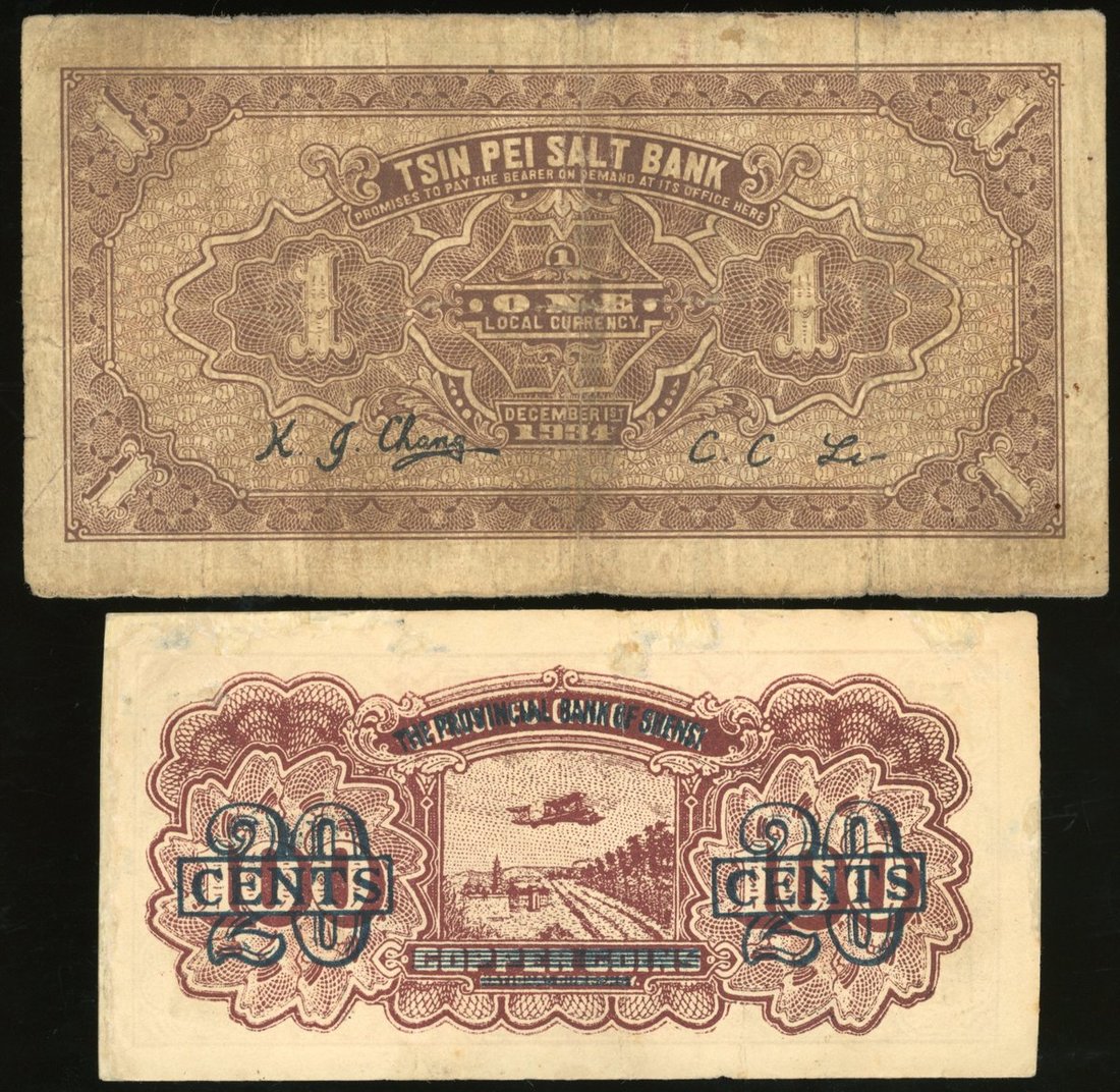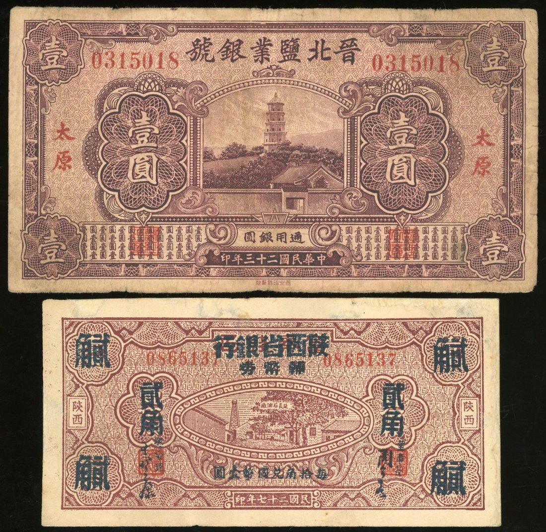 Shansi, China, a pair, including, -Provincial Bank of Shensi, 20 cents, 1938, serial number 0865137,