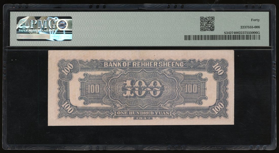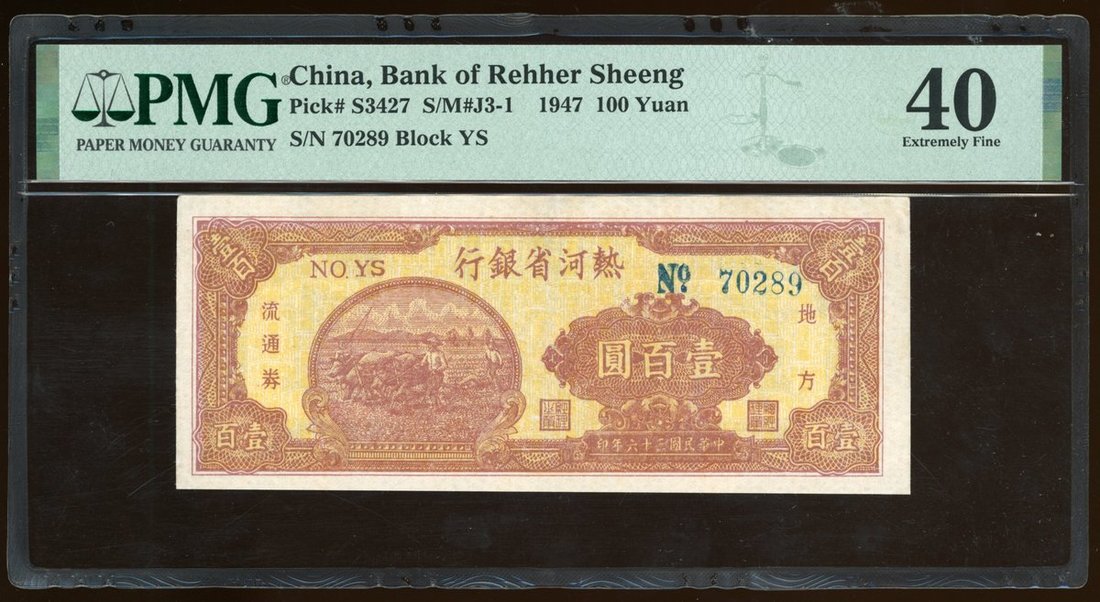 民國三十六年(1947)熱河省銀行壹佰圓,編號YS70289,PMG 40
