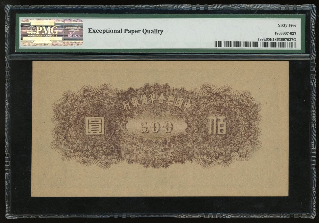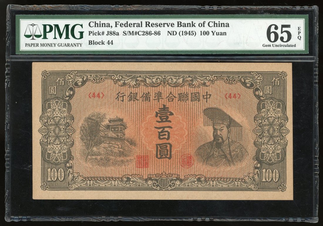 Federal Reserve Bank of China, 100 yuan, ND (1945), block 44, (Pick J88a), PMG 65EPQ