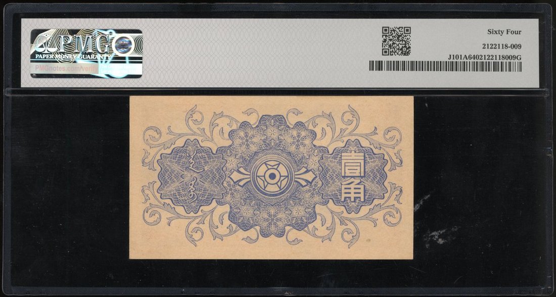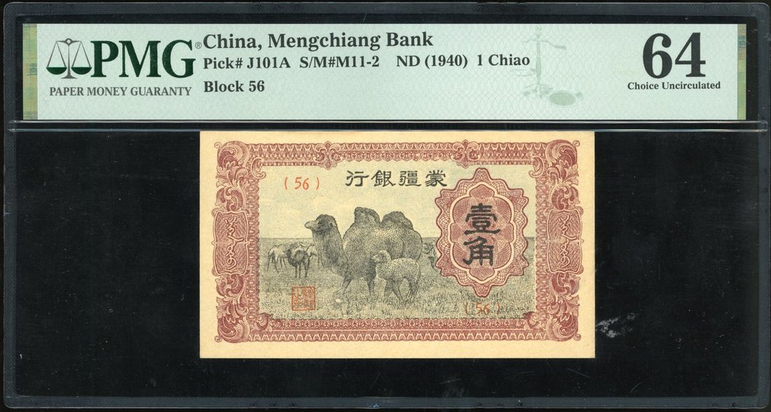 Mengchiang Bank, China, 1 chiao, ND (1940), block 56, (Pick J101A), PMG 64 Choice Uncirculated.