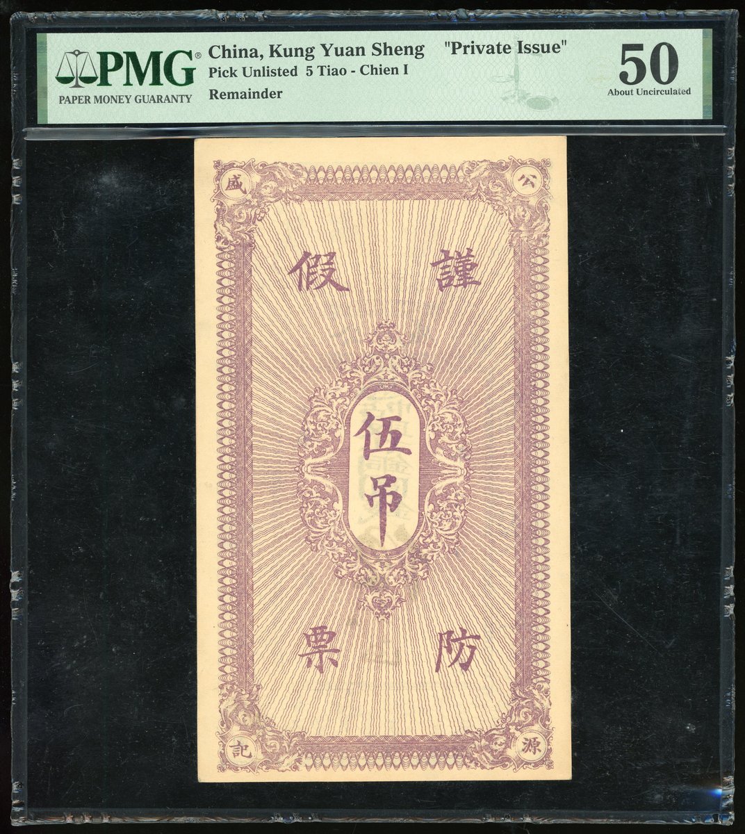 Kung Yuan Sheng, Chihli Province, China, 5 tiao remainder, ND, Chien I, without serial numbers, private issue,
