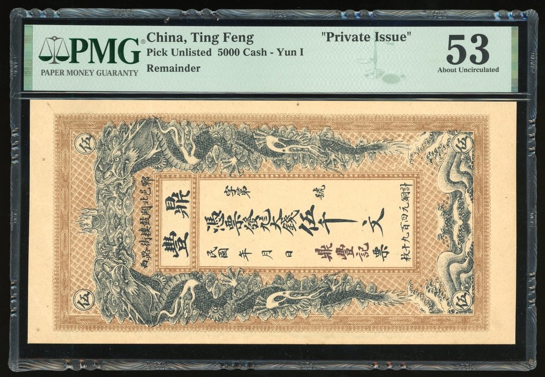 Ting Feng, Private Issue, China, remainder 5000 cash, ND (Republican era) Yun I, vertical format, dragons at either side,