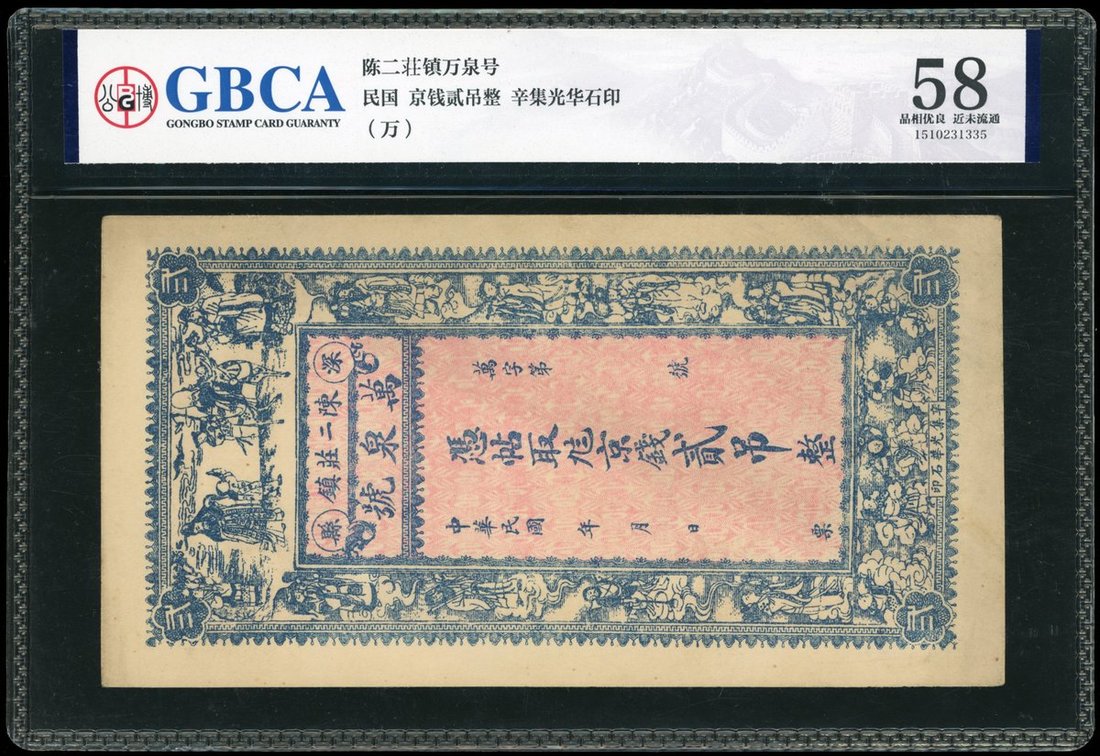 Wan Quan Hao, Hepei Province, China, 2 tiao remainder, ND (Republican Era), no serial number, private issue,