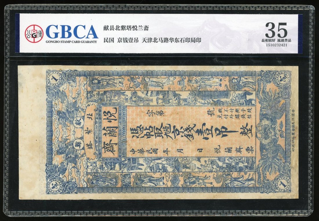 Yue Lan Zhai, Hepei Province, China, 1 tiao remainder, ND (Republican Era), Beizita Village, no serial number, private issue,