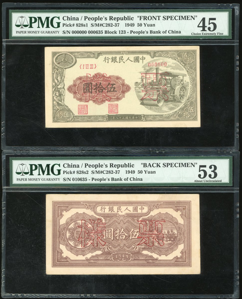People's Bank of China, 1st series renminbi, 1948-1949, 50 yuan, uniface obverse and reverse specimen, 'Steam Roller',