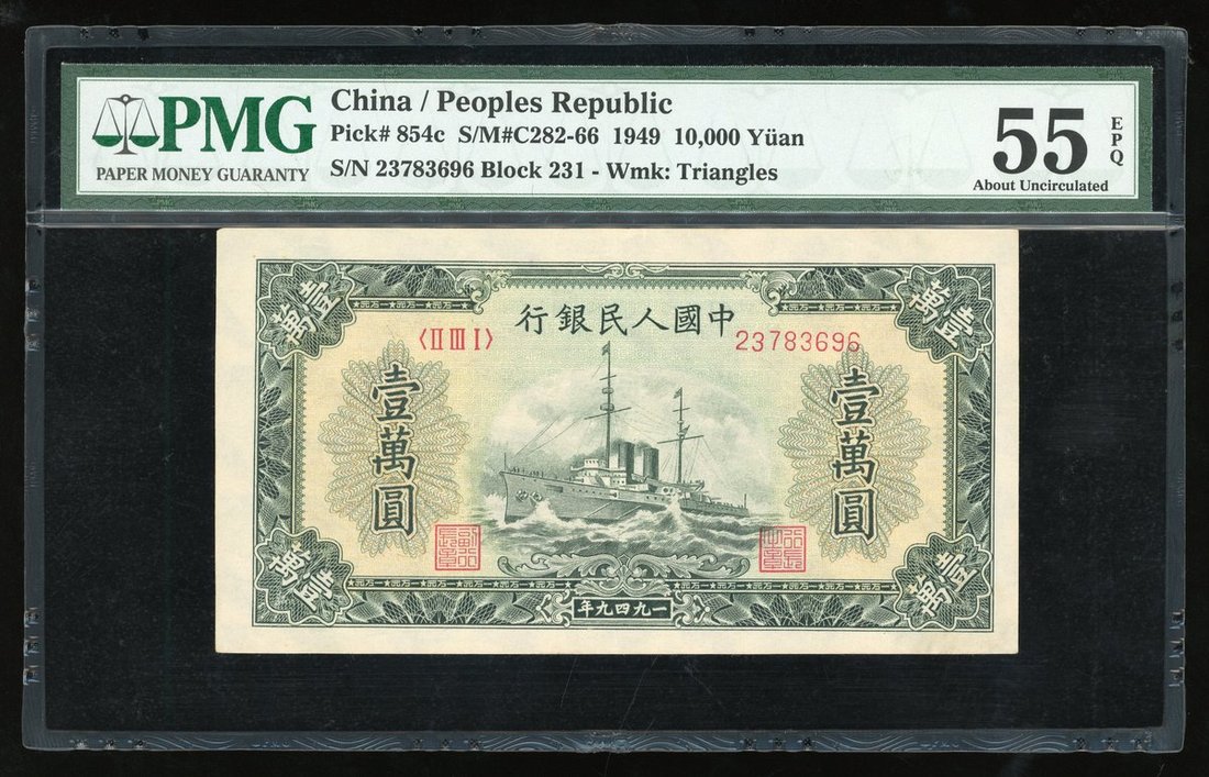 1949年中國人民銀行第一版人民幣壹萬圓「軍艦」,編號 II III I 23783696,PMG 55EPQ