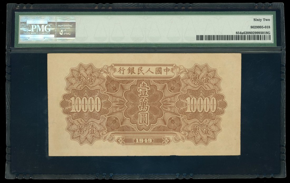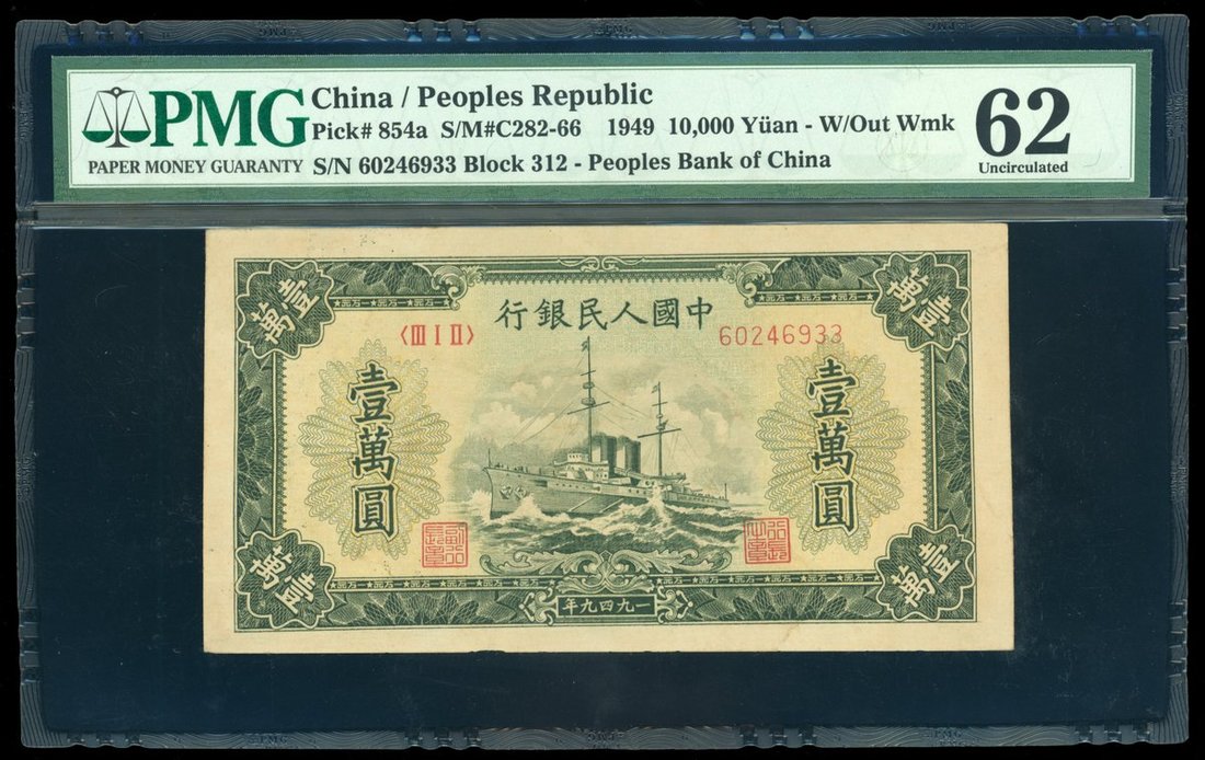 1949年中國人民銀行第一版人民幣壹萬圓「軍艦」,編號 III I II 60246933,PMG 62
