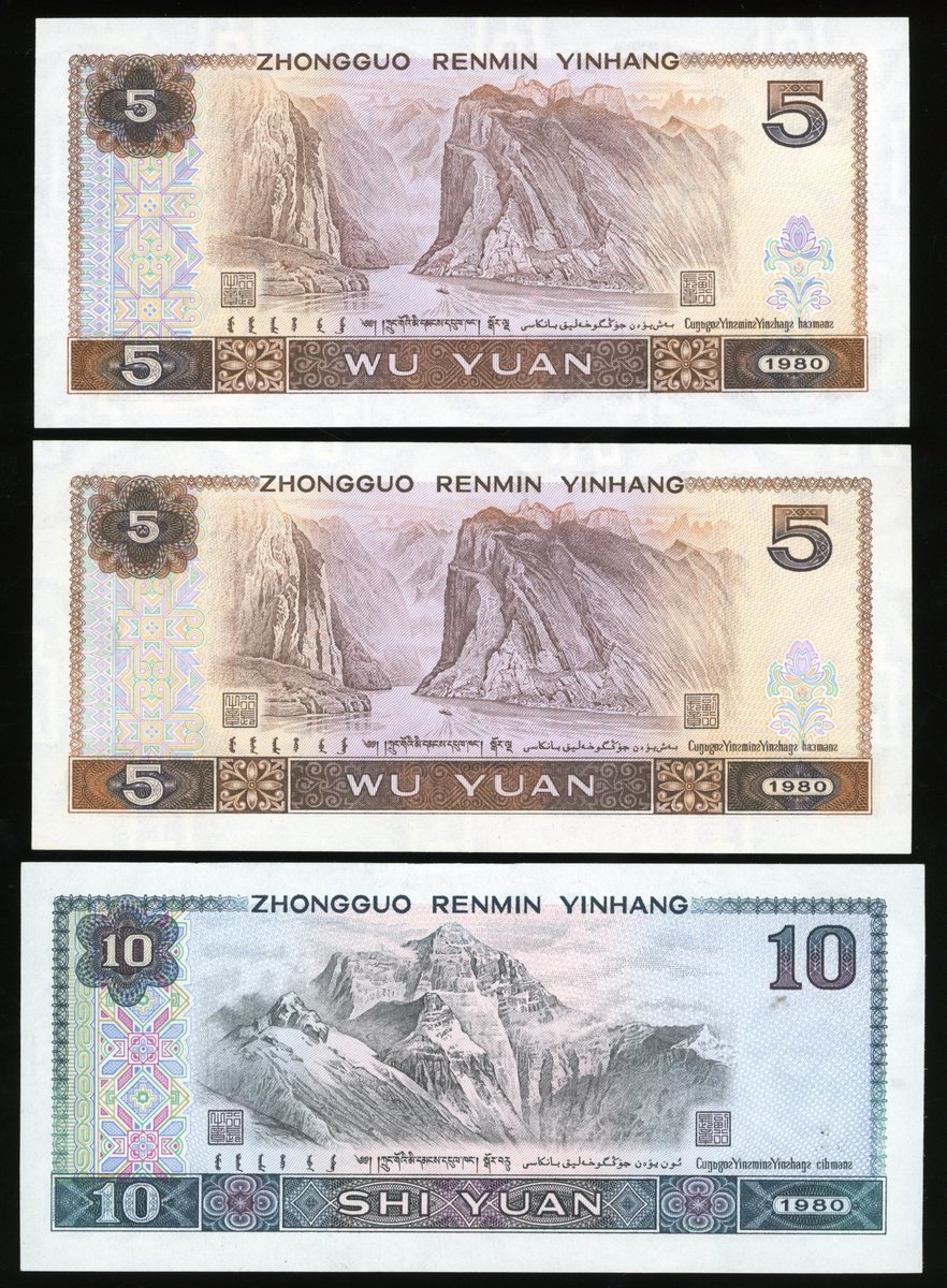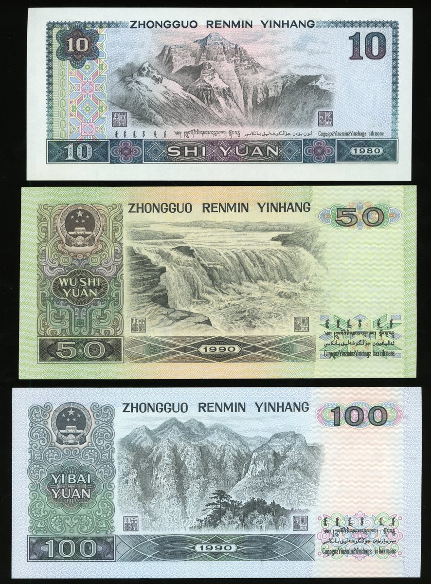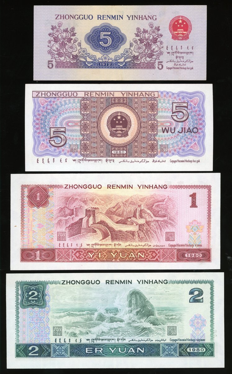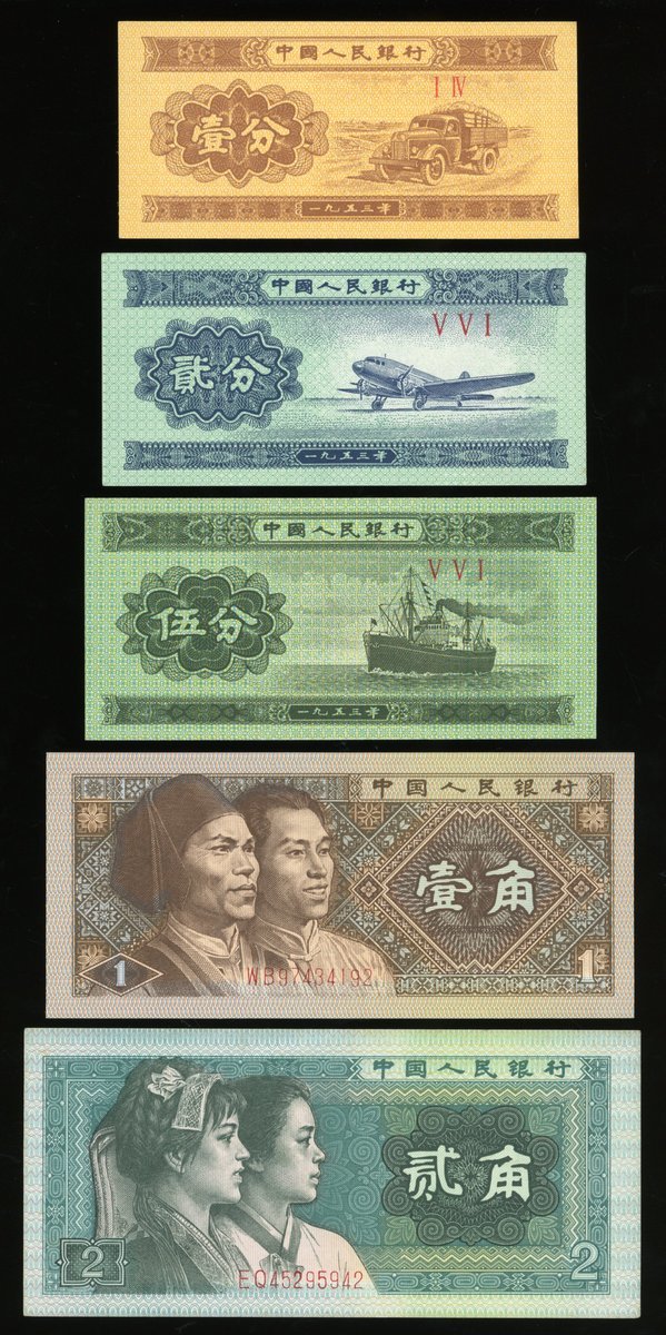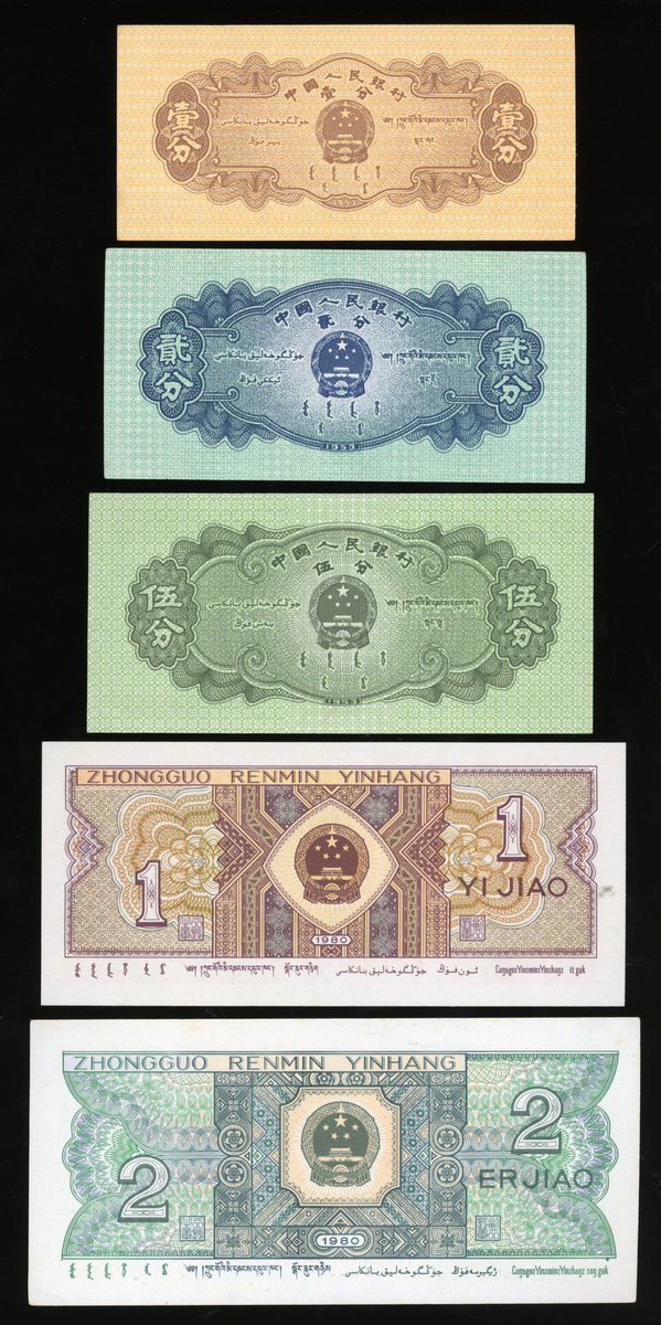People's Bank of China, a group of 15x, including 1, 2 and 5 fen 1953, 5 jiao 1972, 1, 2, 5 jiao, 1, 2, 5 and 10 (2) yuan 1980, 50 and 100 yuan 1990,