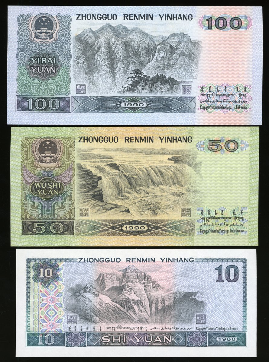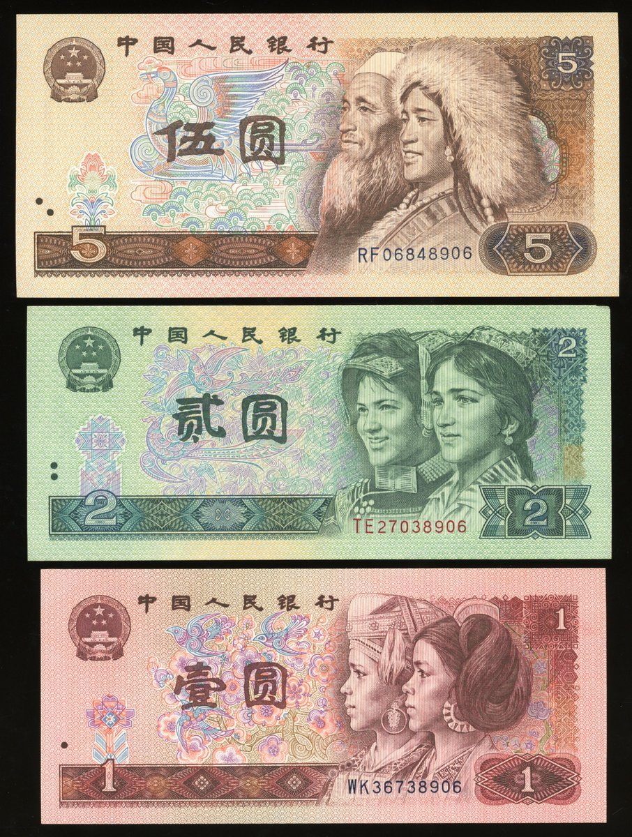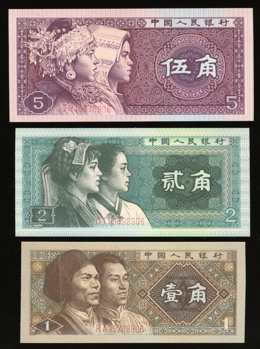 People's Bank of China, 4th Series Renminbi, a set of 9x, including: 1, 2, 5 jiao, 1, 2, 5, 10, 50 and 100 yuan, 1990, all with serial numbers ending with '8906', together with 2nd Series Renminbi 5, 2 and 1 fen,
