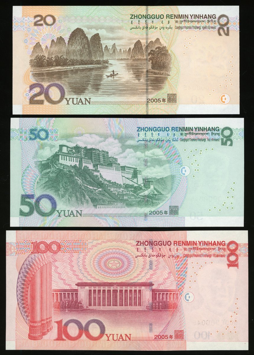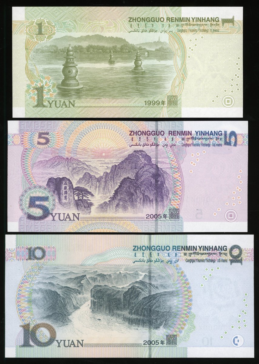 People's Bank of China, 5th Series Renminbi, 1999-2005, matching serial number 000045 set, including, 1, 5, 10, 20, 50 and 100 yuan, uncirculated (6)