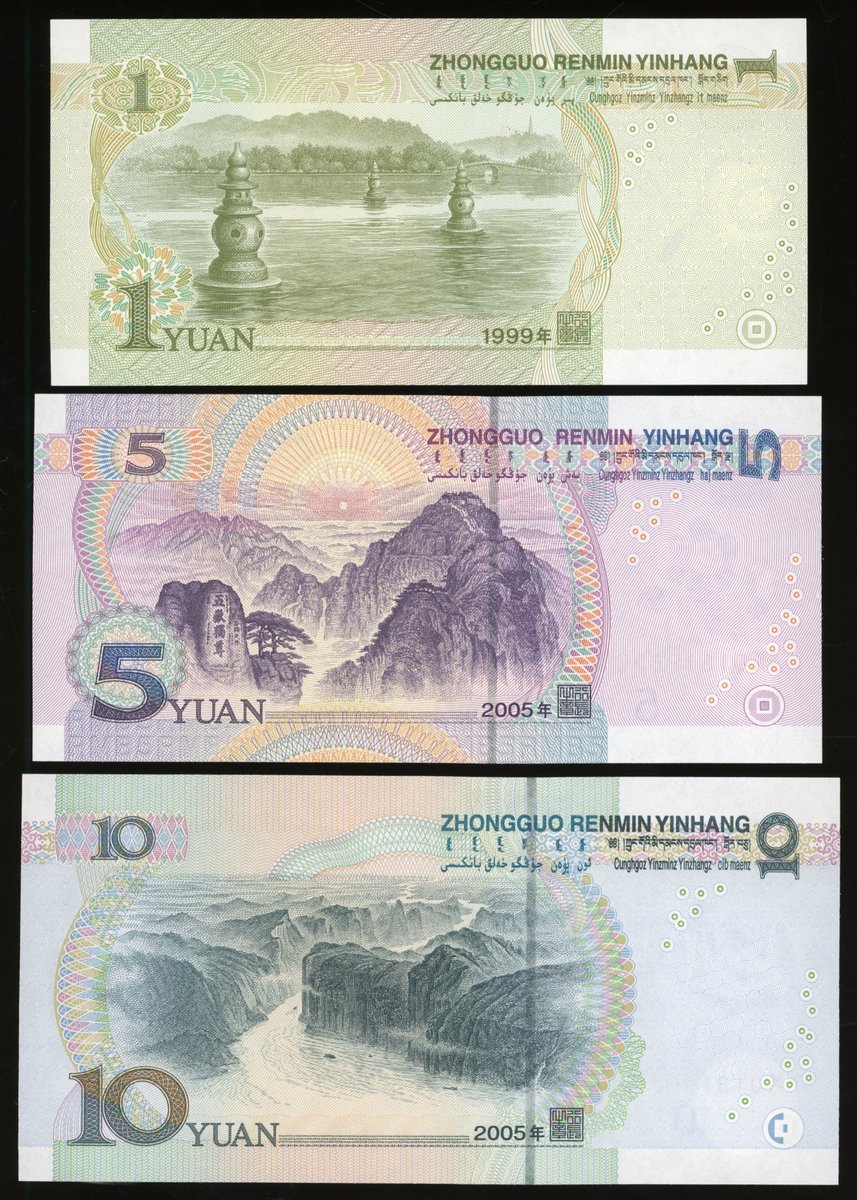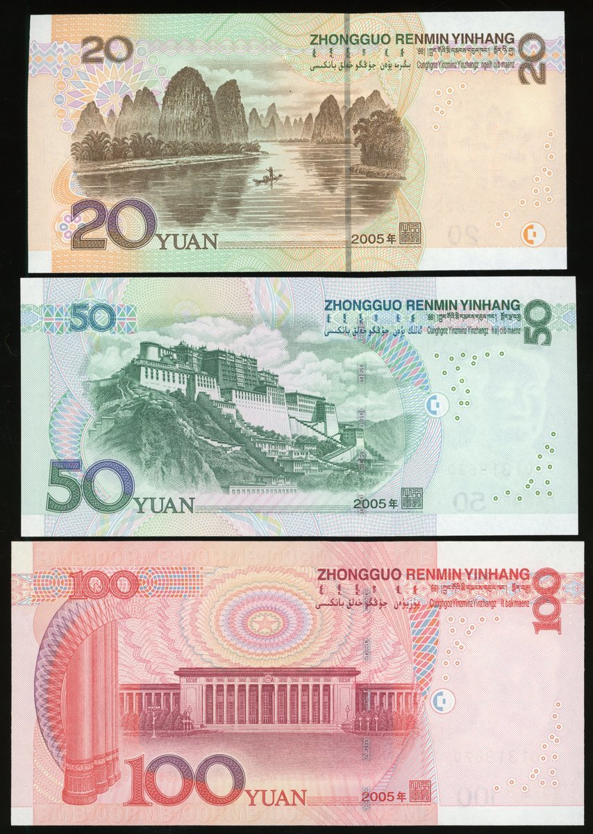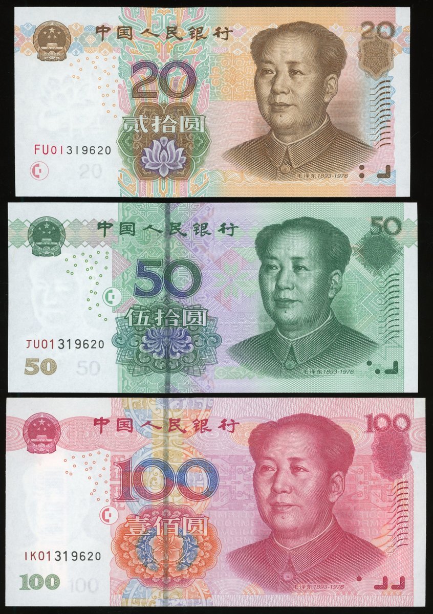 People's Bank of China, 5th Series Renminbi, 2005, matching serial number 1319620 set, including, 1, 5, 10, 20, 50 and 100 yuan, uncirculated (6)
