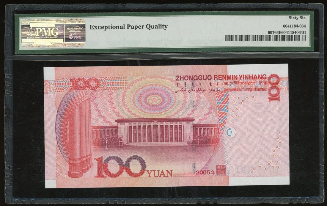 People's Bank of China, 5th Series Renminbi, 100 yuan, 2005, low serial number N0L0 000018, (Pick 907), PMG 66EPQ Gem Uncirculated