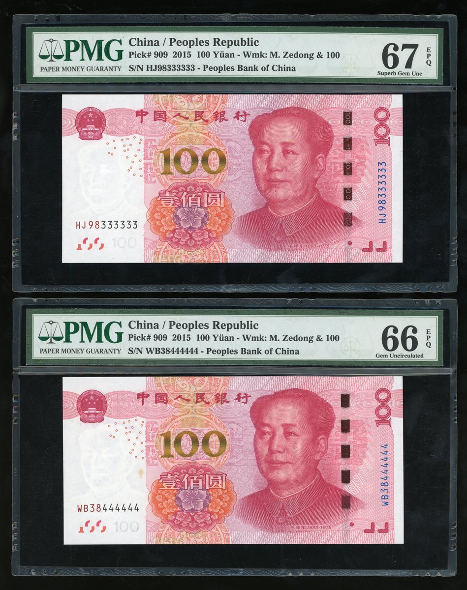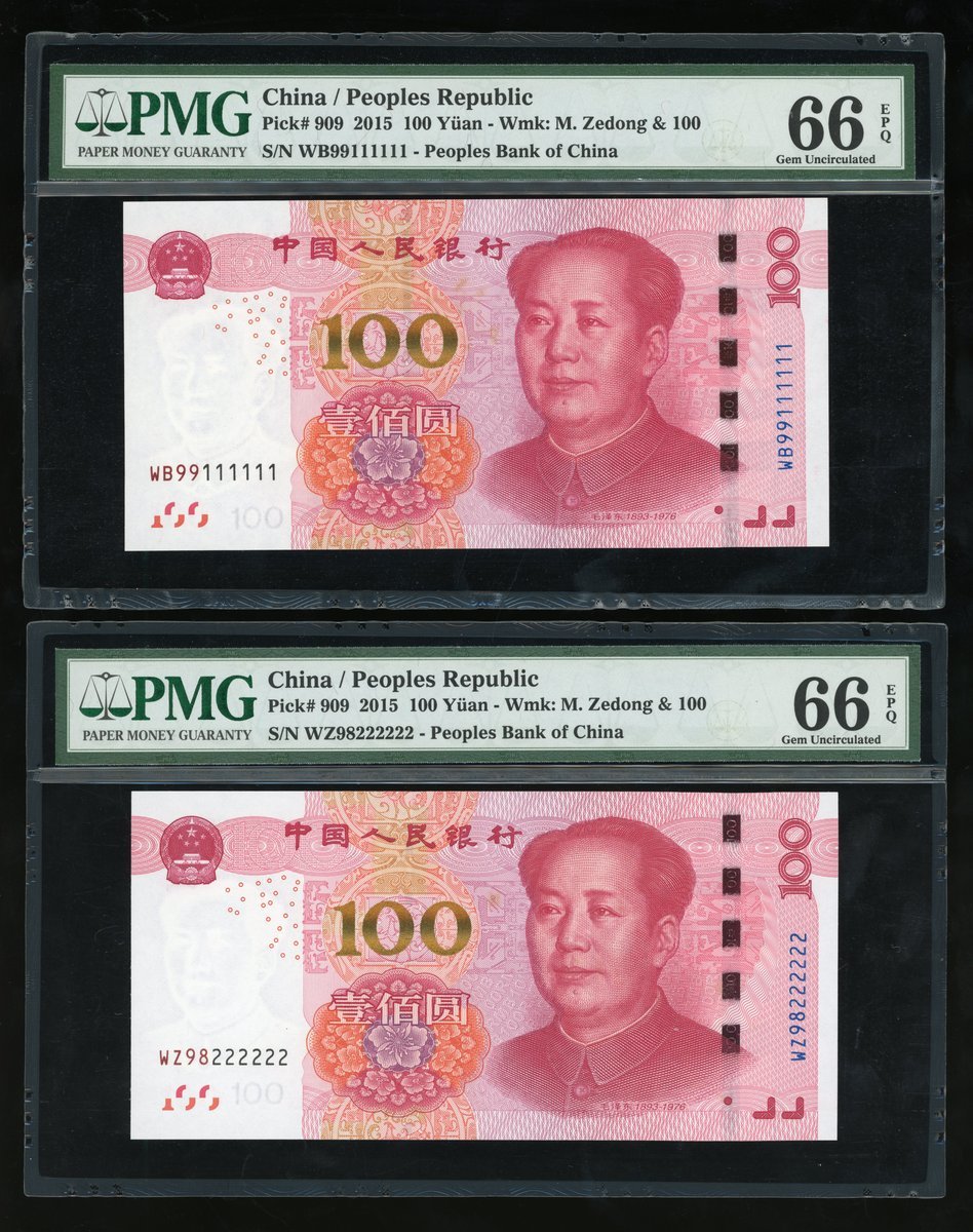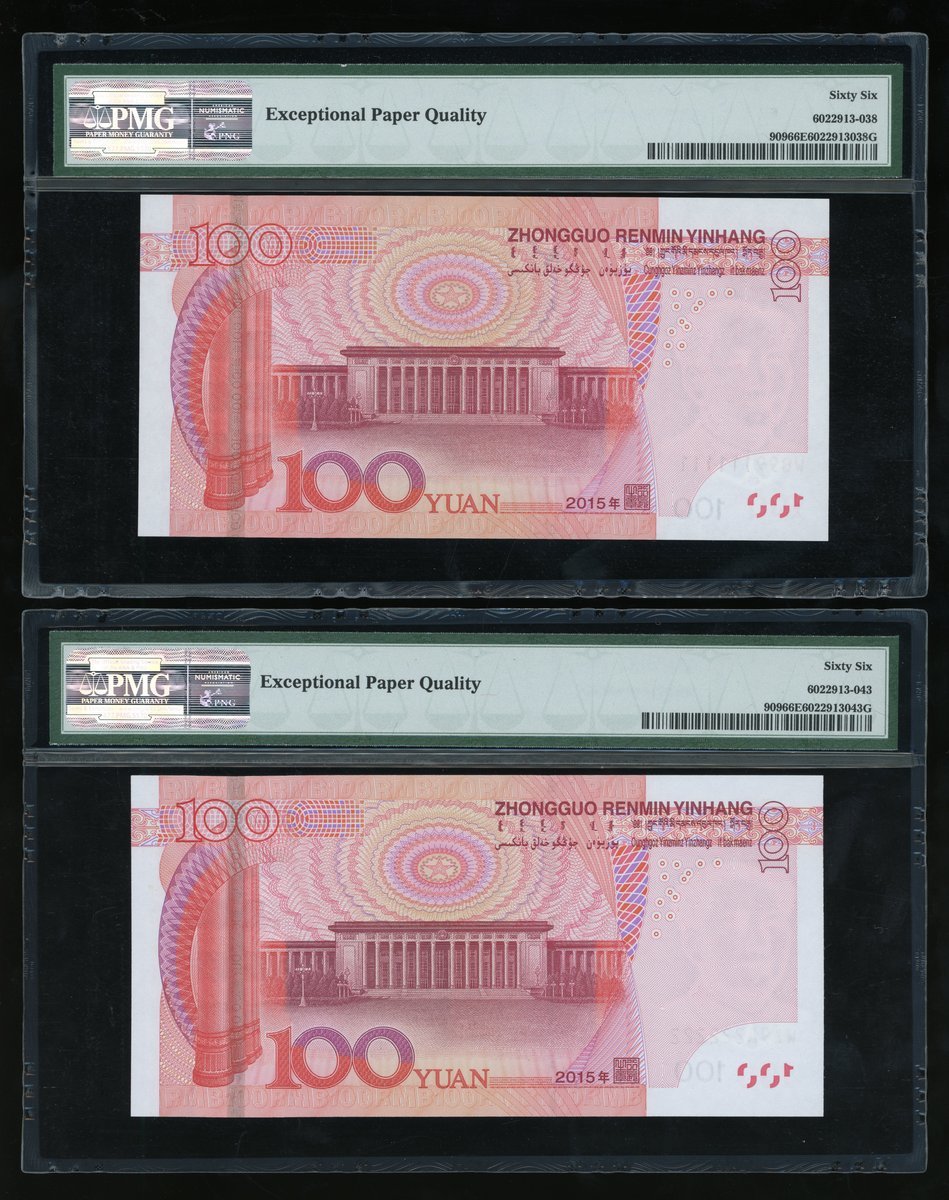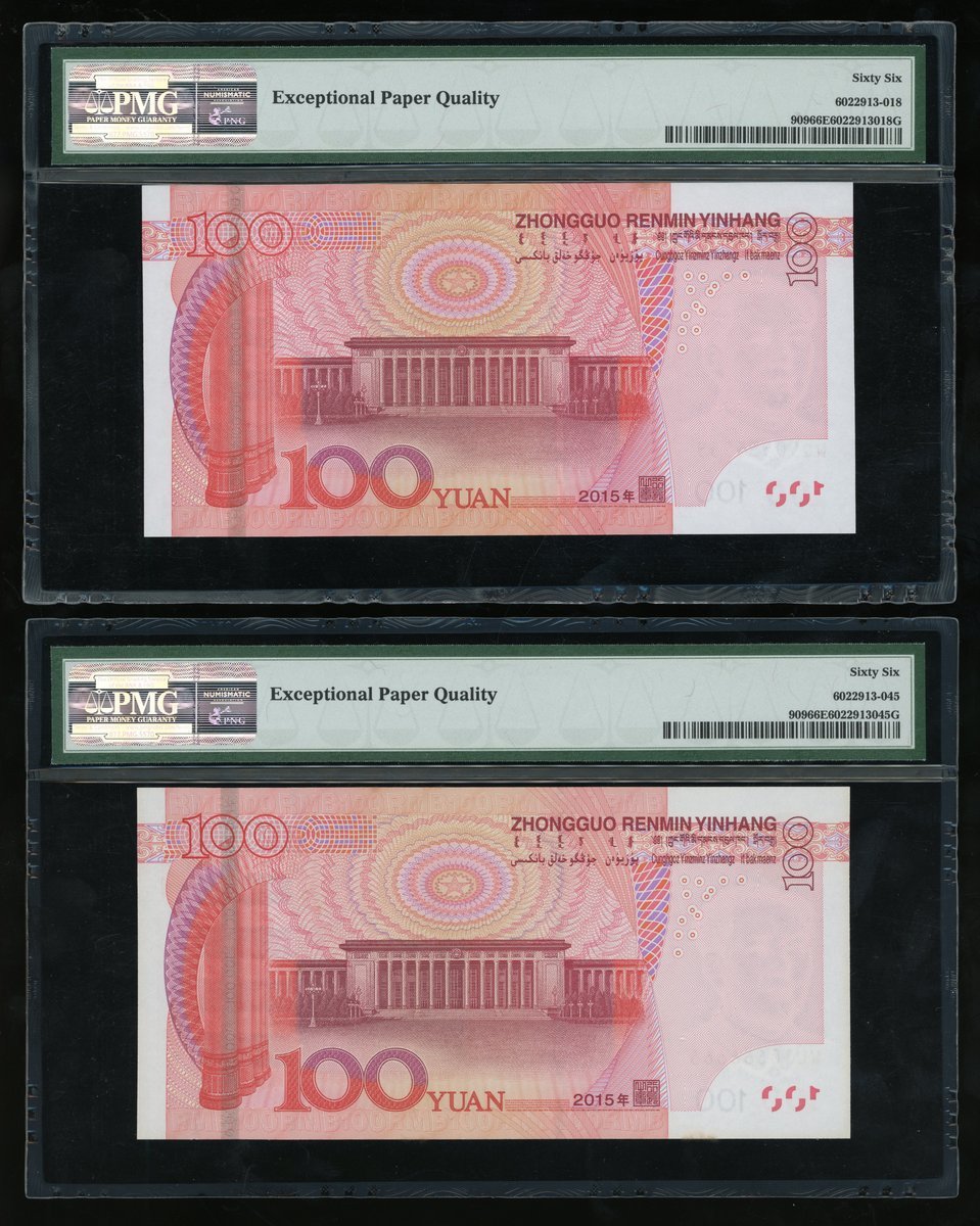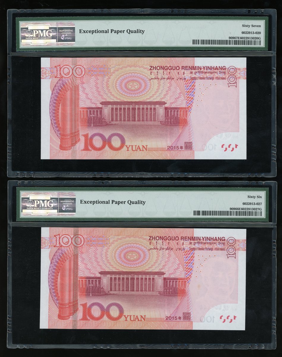 People's Bank of China, 5th Series Renminbi, 2015, 100 yuan, a set of fancy serial numbers, including,