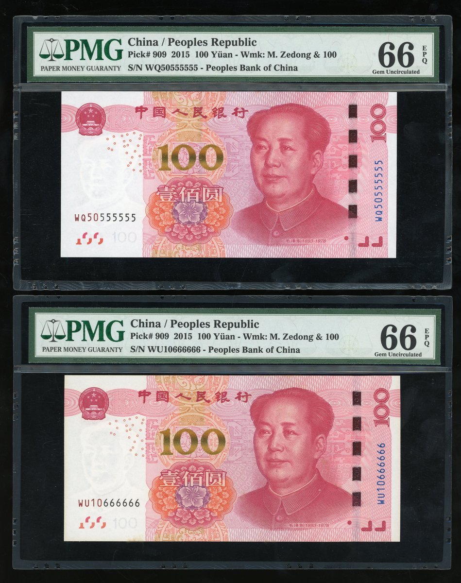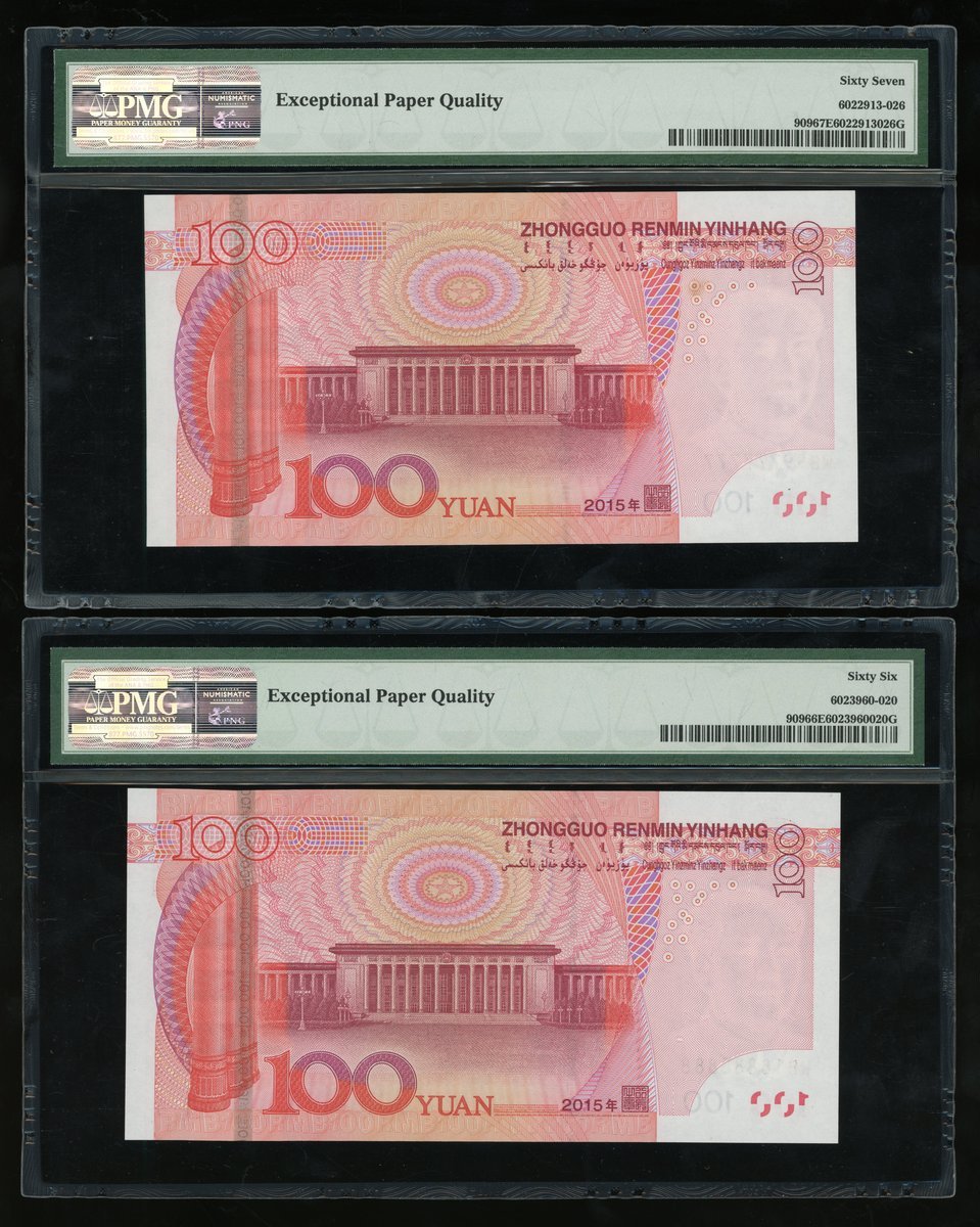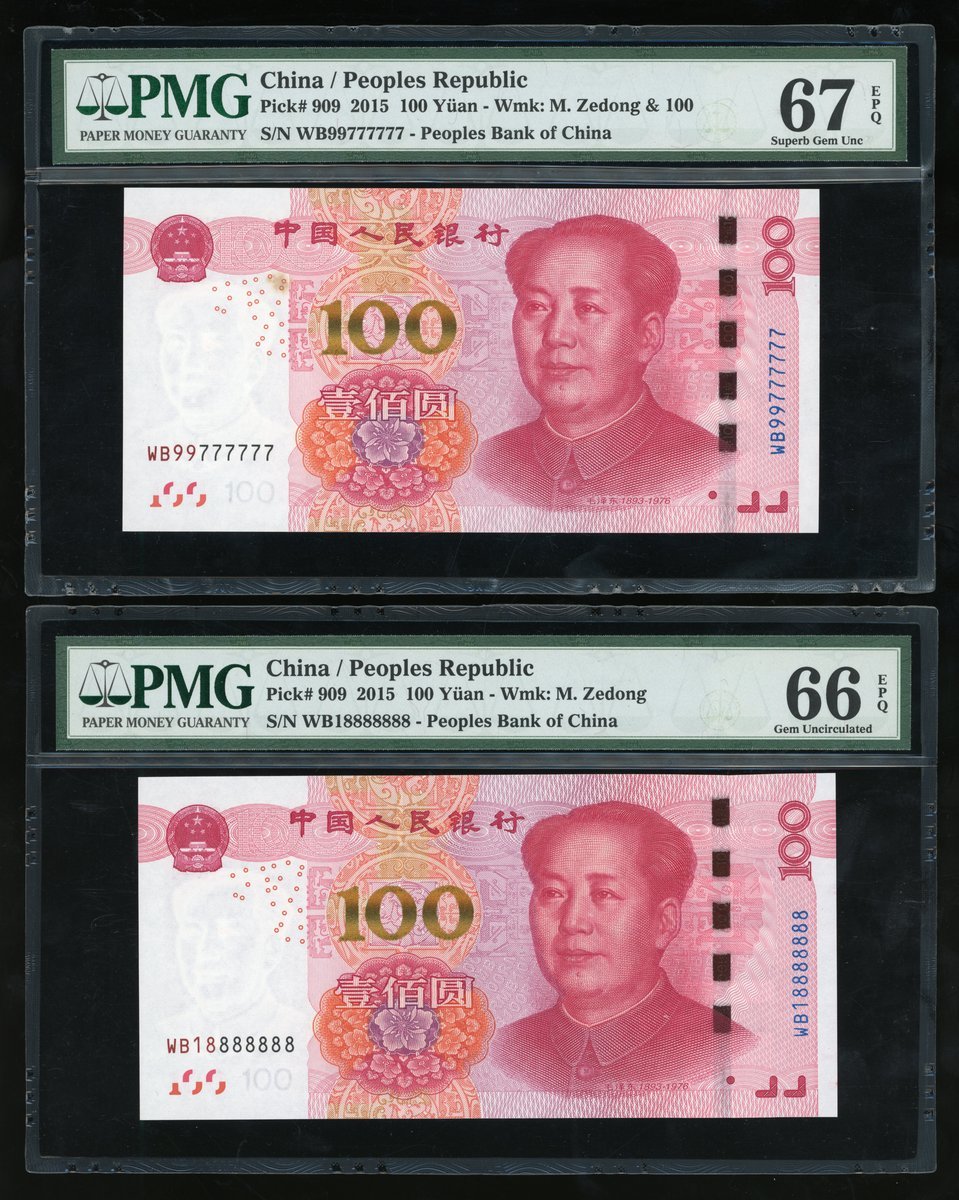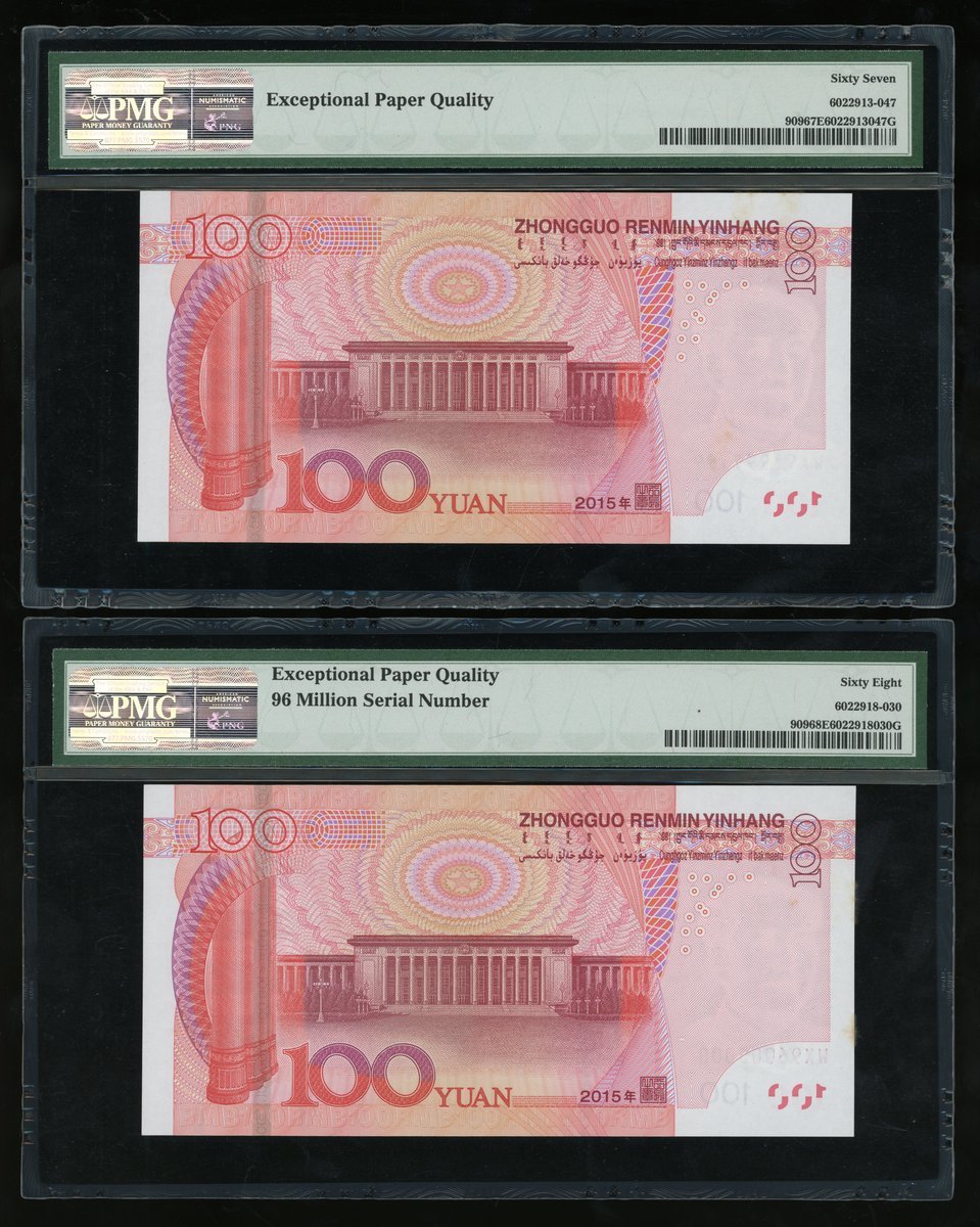 People's Bank of China, 5th Series Renminbi, 2015, 100 yuan, a set of fancy serial numbers, including,