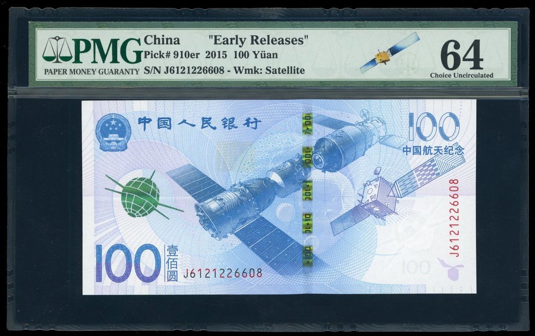People's Bank of China, 100 yuan, 2015, serial number J 6121226608, early release, Aerospace commemorative issue,