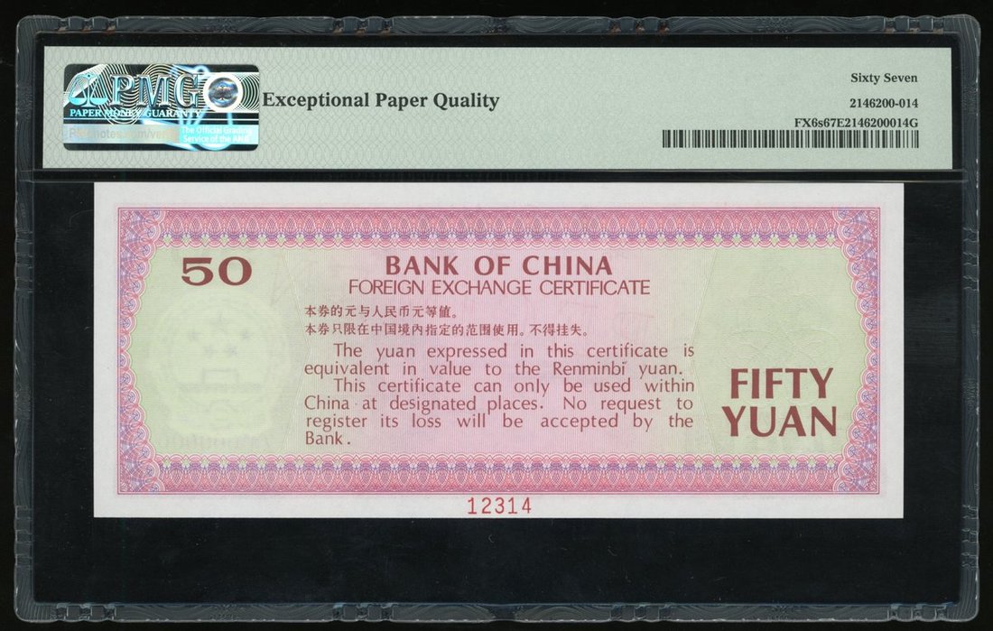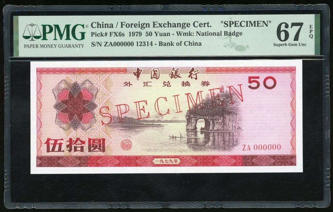 Foreign Exchange Certificate, Bank of China, specimen 50 yuan, 1979, serial number ZA000000, (Pick FX6s), PMG 67EPQ