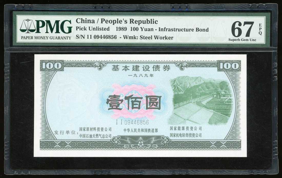 People's Republic of China, 100 yuan Infrastructure Bond, 1989, issued by the Ministry of the Railway Lines,
