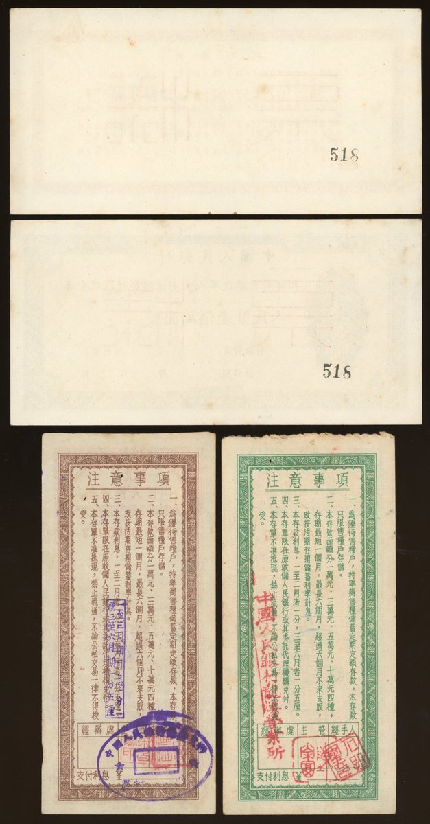 -Salary Fixed Deposit coupon for 10,000 and 50,000 yuan, 1954-55,