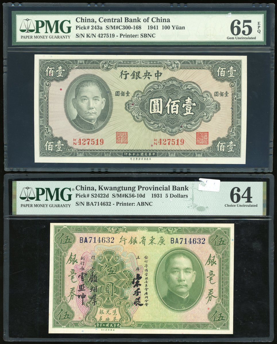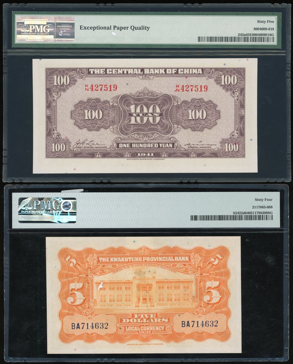 China, a group of 5x, including, -Central Bank of China, 100 yuan, 1941, PMG 65EPQ,