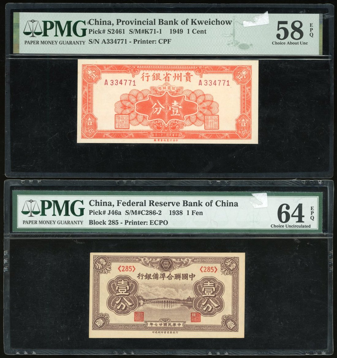 -Federal Reserve Bank of China, 1 fen, 1938, PMG 64EPQ,