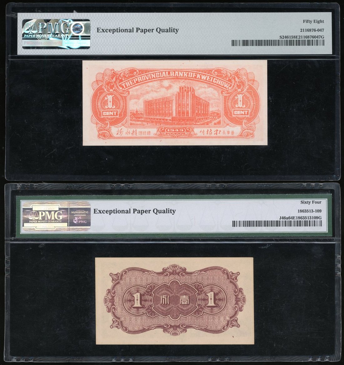 -Provincial Bank of Kweichow, 1 cent, 1949, PMG 58EPQ,
