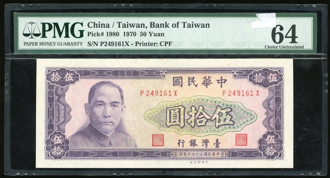 -Bank of Taiwan, 50 yuan, 1970, PMG 64,